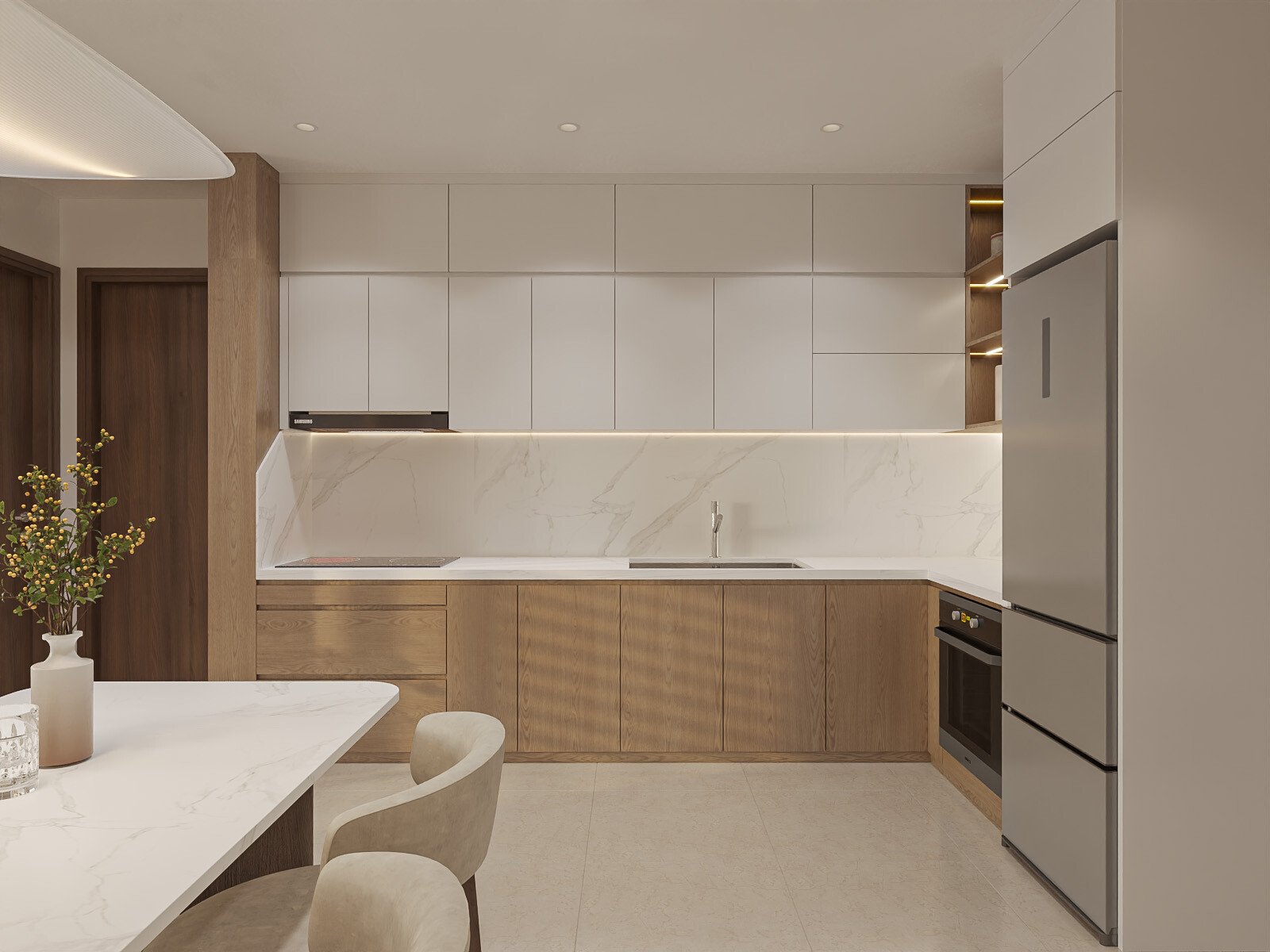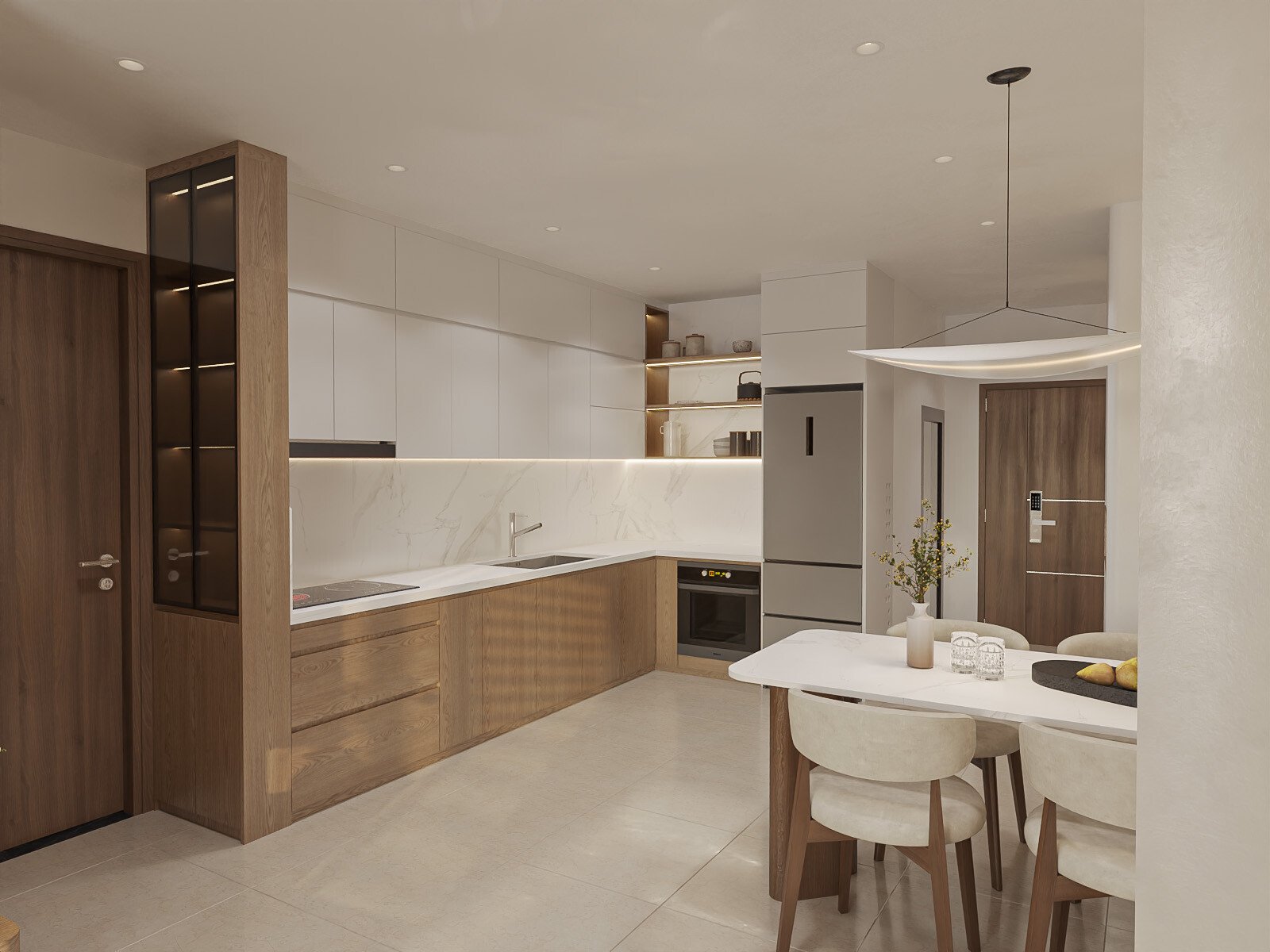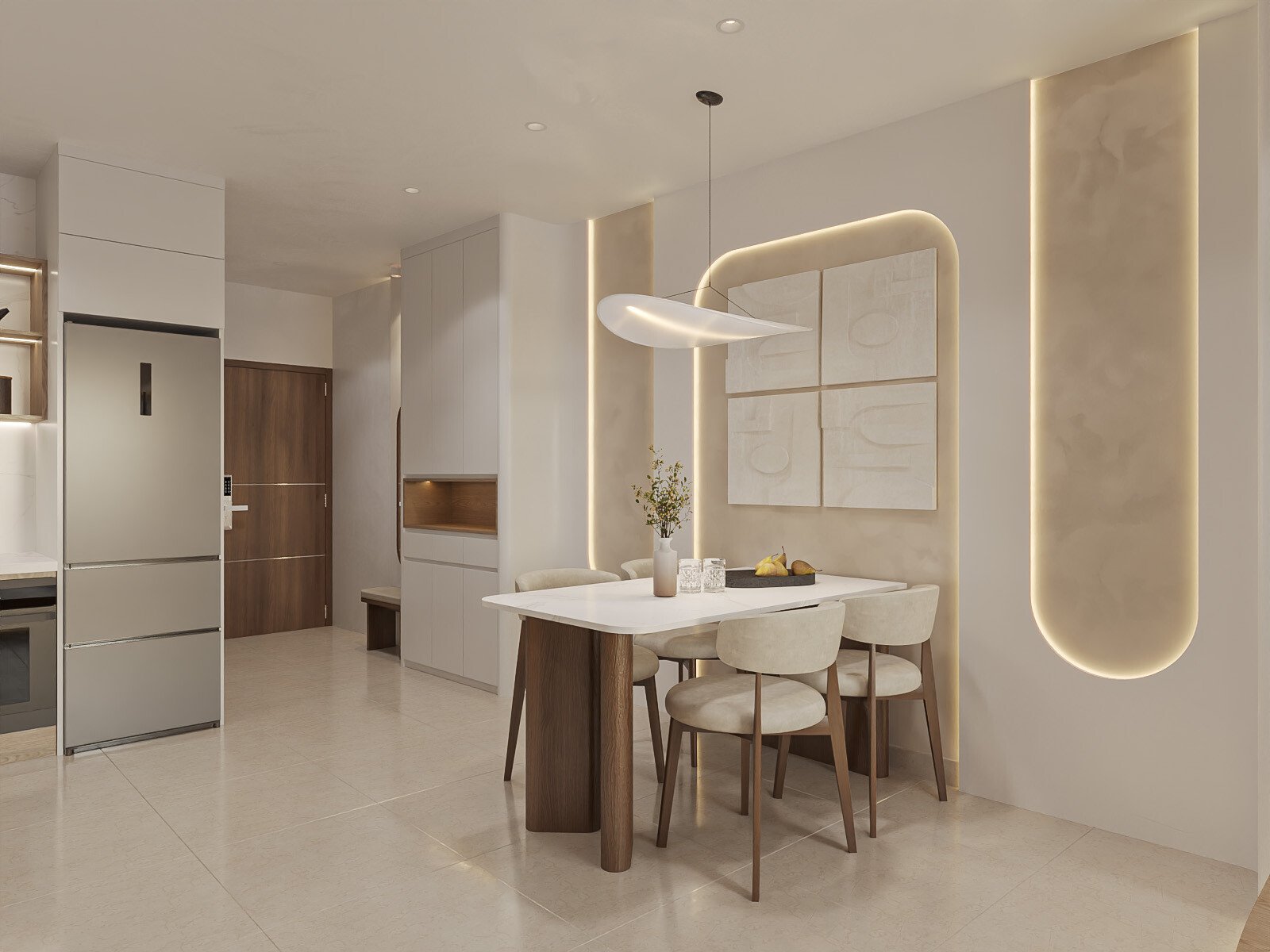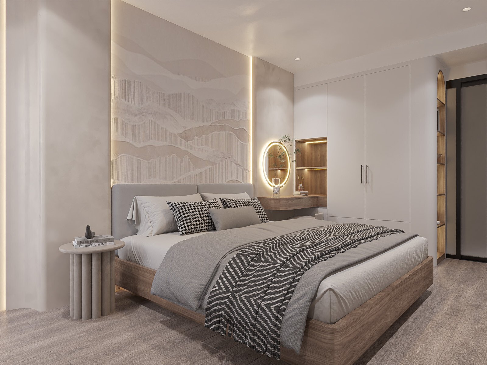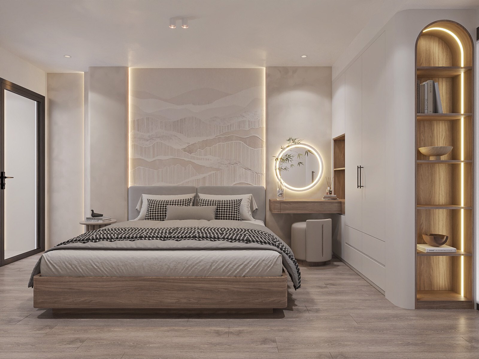 Phong cách Japandi là sự hòa quyện giữa nét tối giản Nhật Bản và ấm áp Bắc Âu – tinh thần được thể hiện rõ trong từng chi tiết nội thất. Từng món đồ đều được chọn lọc kỹ lưỡng, đề cao công năng, hình khối nhẹ nhàng và màu sắc hài hòa. Nhờ đó, căn hộ không chỉ là nơi ở mà còn là tổ ấm thanh thoát, phản chiếu gu sống tinh tế của gia chủ – giản dị mà vẫn đầy cảm xúc giữa lòng phố biển.