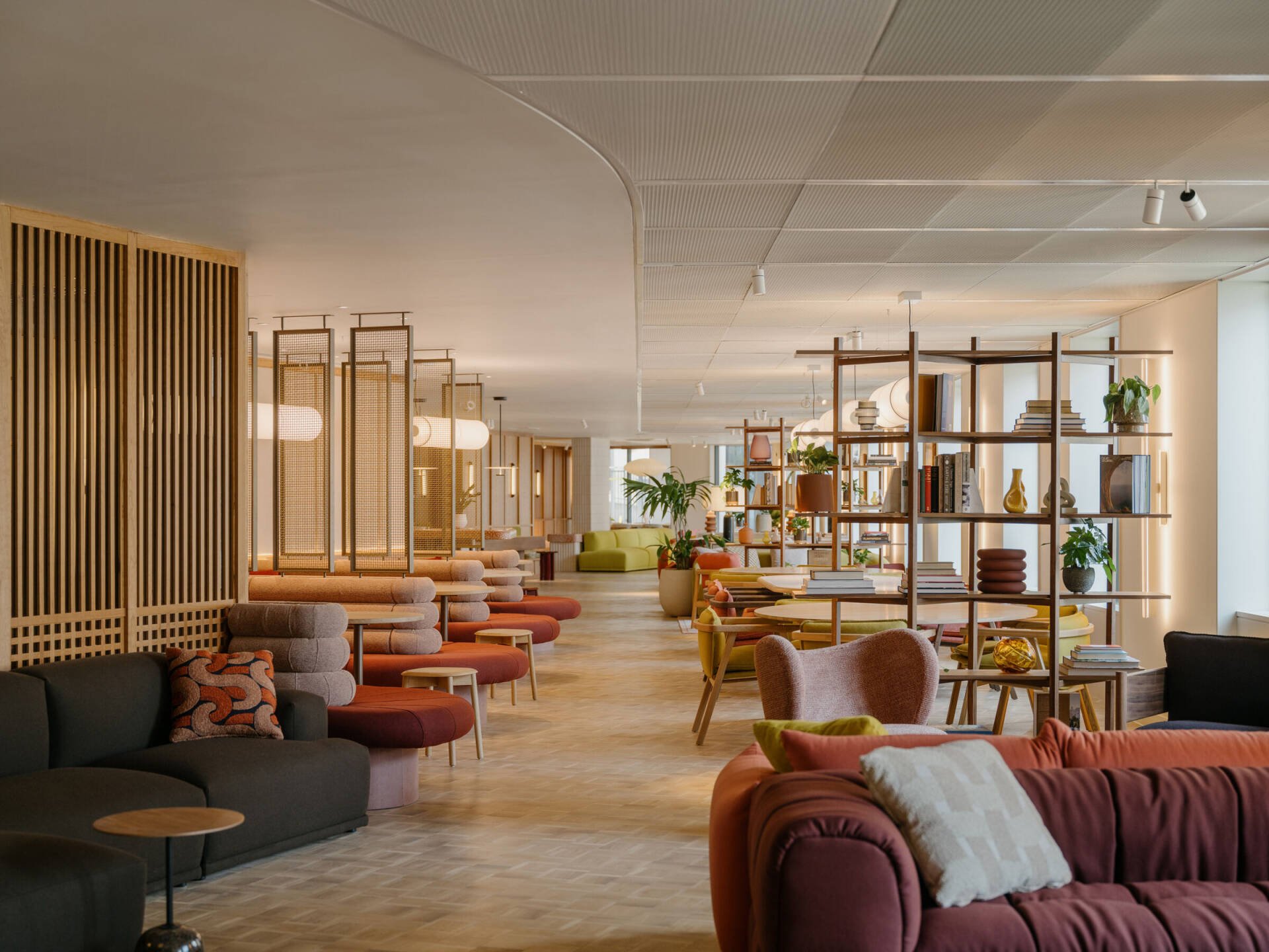 Đối lập với sự yên bình của các không gian học tập là những khu vực mang năng lượng trẻ trung - khu lễ tân và lounge được tô điểm bởi màu sắc tươi sáng và đồ nội thất hình khối mềm mại, khuyến khích sự giao tiếp và cởi mở. Sự chuyển đổi dần dần giữa tông màu, chất liệu và ánh sáng tạo nên một “hành trình thị giác”, giúp người sử dụng cảm nhận nhịp điệu tự nhiên khi di chuyển trong không gian.
