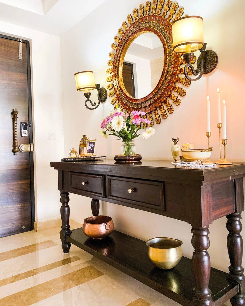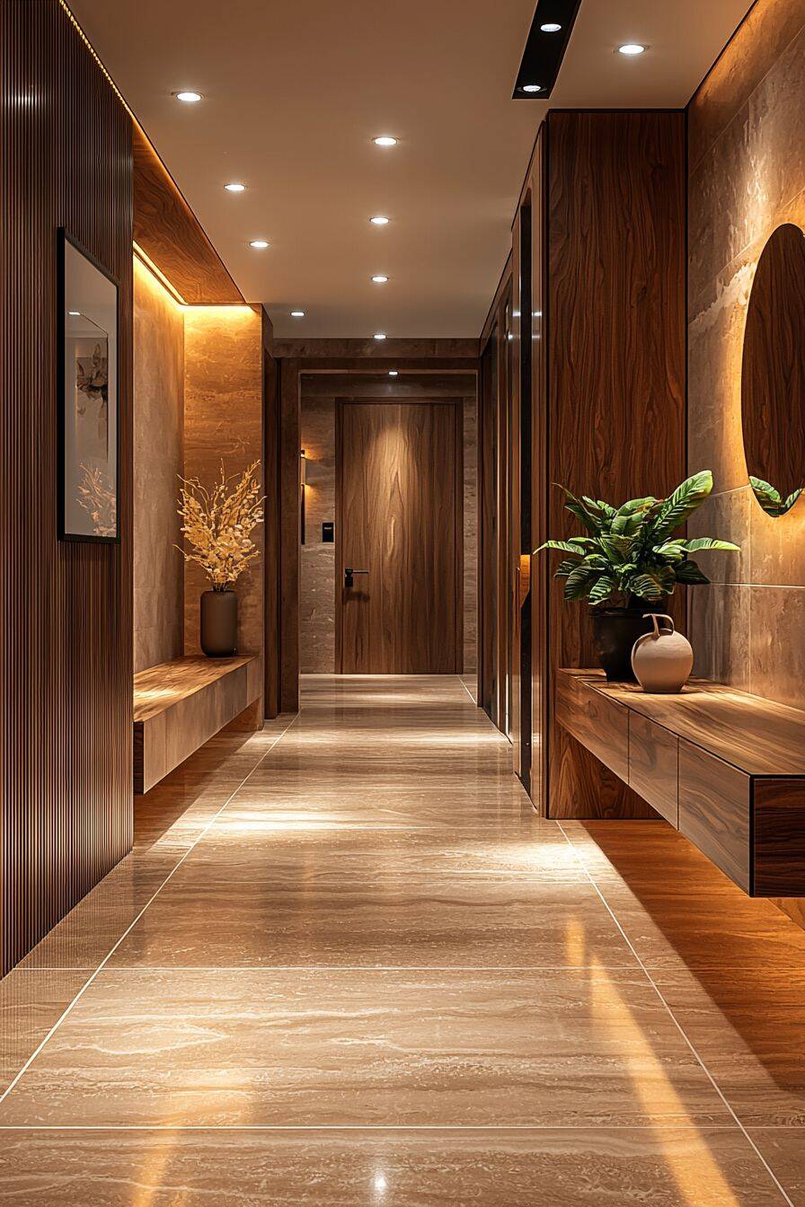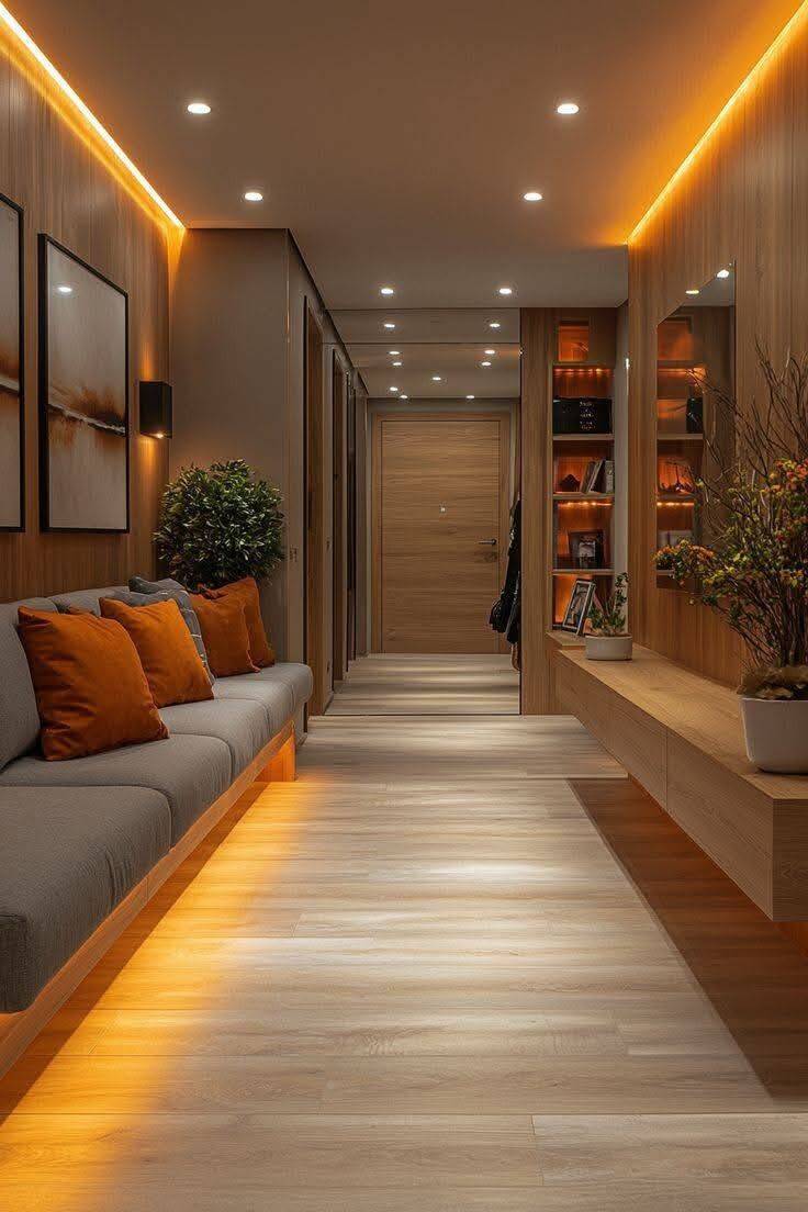 Nếu diện tích hạn chế, hãy ưu tiên sự gọn gàng. Tủ âm tường, kệ giày đóng kín, băng ghế nhỏ để ngồi thay giày… giúp tiền sảnh sạch sẽ và dễ sử dụng mỗi ngày. Đối với nhà ống, việc bố trí ánh sáng để dẫn hướng và gương soi đặt đúng vị trí sẽ hỗ trợ không gian trông rộng hơn mà vẫn giữ được tính riêng tư.