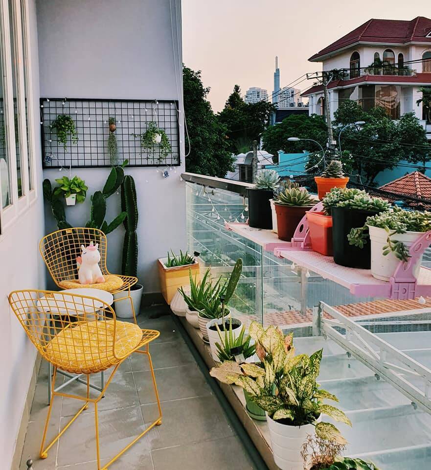 Ban công thành góc chill thư giãn - Ứng dụng đèn vàng và nội thất nhỏ gọn