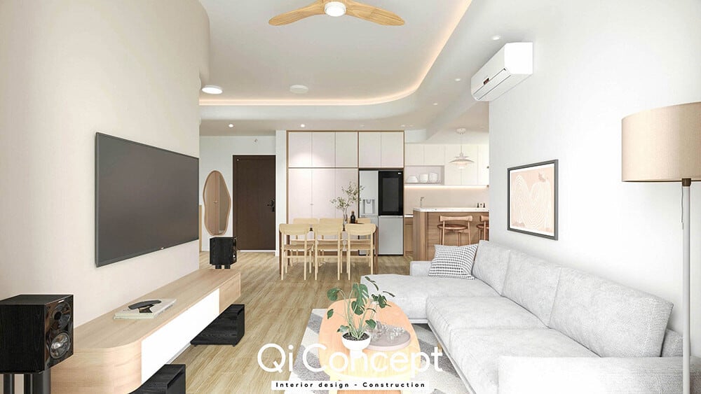 Hôm nay Qi Concept sẽ chia sẻ một mẫu thiết kế nội thất cho căn hộ The Sun Avenue 3 phòng ngủ mà mình tin rằng sẽ là nguồn cảm hứng tuyệt vời cho những ai đang tìm kiếm sự cân bằng giữa tính hiện đại và cảm giác ấm cúng gia đình.