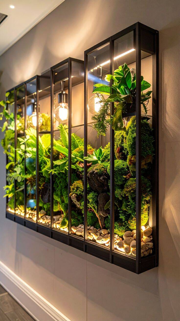 Những khu vực như cầu thang hay hành lang thường ít được chú ý trong thiết kế nội thất, nhưng lại rất phù hợp để bố trí tường cây. Mảng xanh tại đây giúp làm mềm các bề mặt cứng, đồng thời tạo cảm giác kết nối liền mạch giữa các tầng không gian. Gia chủ có thể lựa chọn tường cây dạng đứng hoặc module treo để tiết kiệm diện tích. Đây là giải pháp vừa thẩm mỹ, vừa tận dụng tối đa những khoảng không vốn bị bỏ trống.