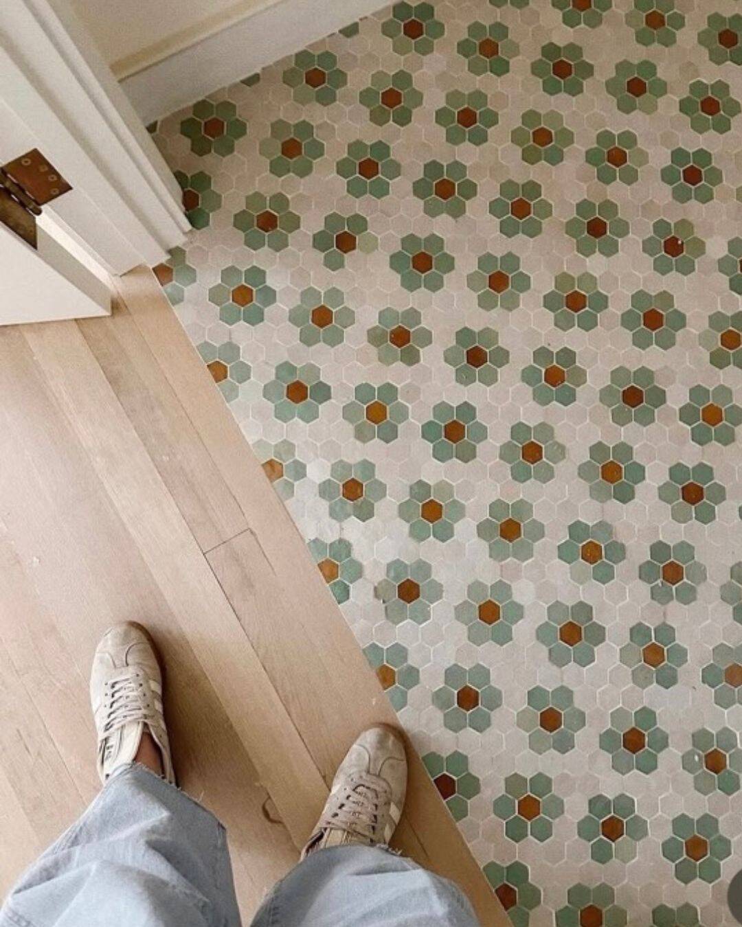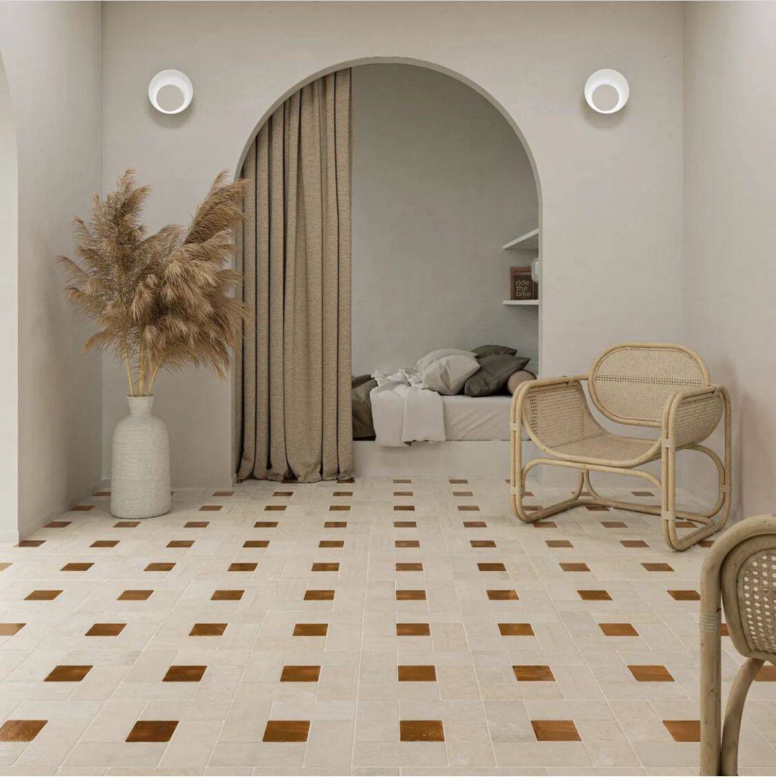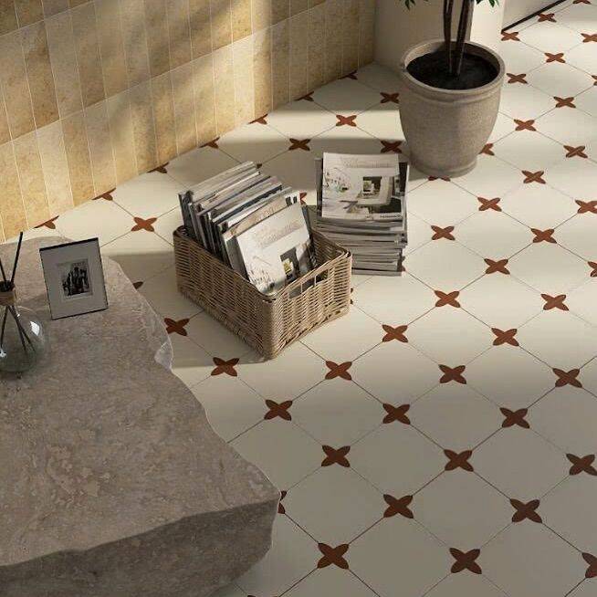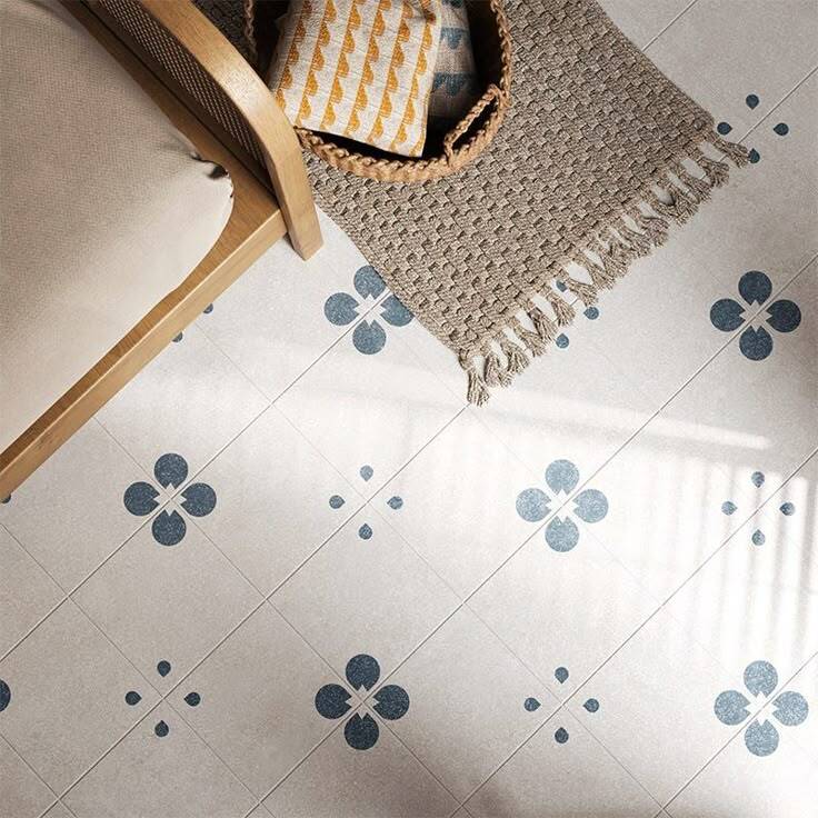 Gạch bông lát nền phong cách cổ điển tiếp tục được ưa chuộng nhờ khả năng tạo chiều sâu thị giác cho không gian. Các họa tiết hoa văn quen thuộc được tinh giản đường nét, kết hợp bảng màu trung tính như be, xám, xanh nhạt. Kiểu gạch này phù hợp với phòng khách, hành lang hoặc khu vực sảnh, nơi cần điểm nhấn nhưng không quá phô trương. Khi phối cùng nội thất tối giản, gạch bông giúp không gian trở nên cân bằng và có bản sắc riêng.