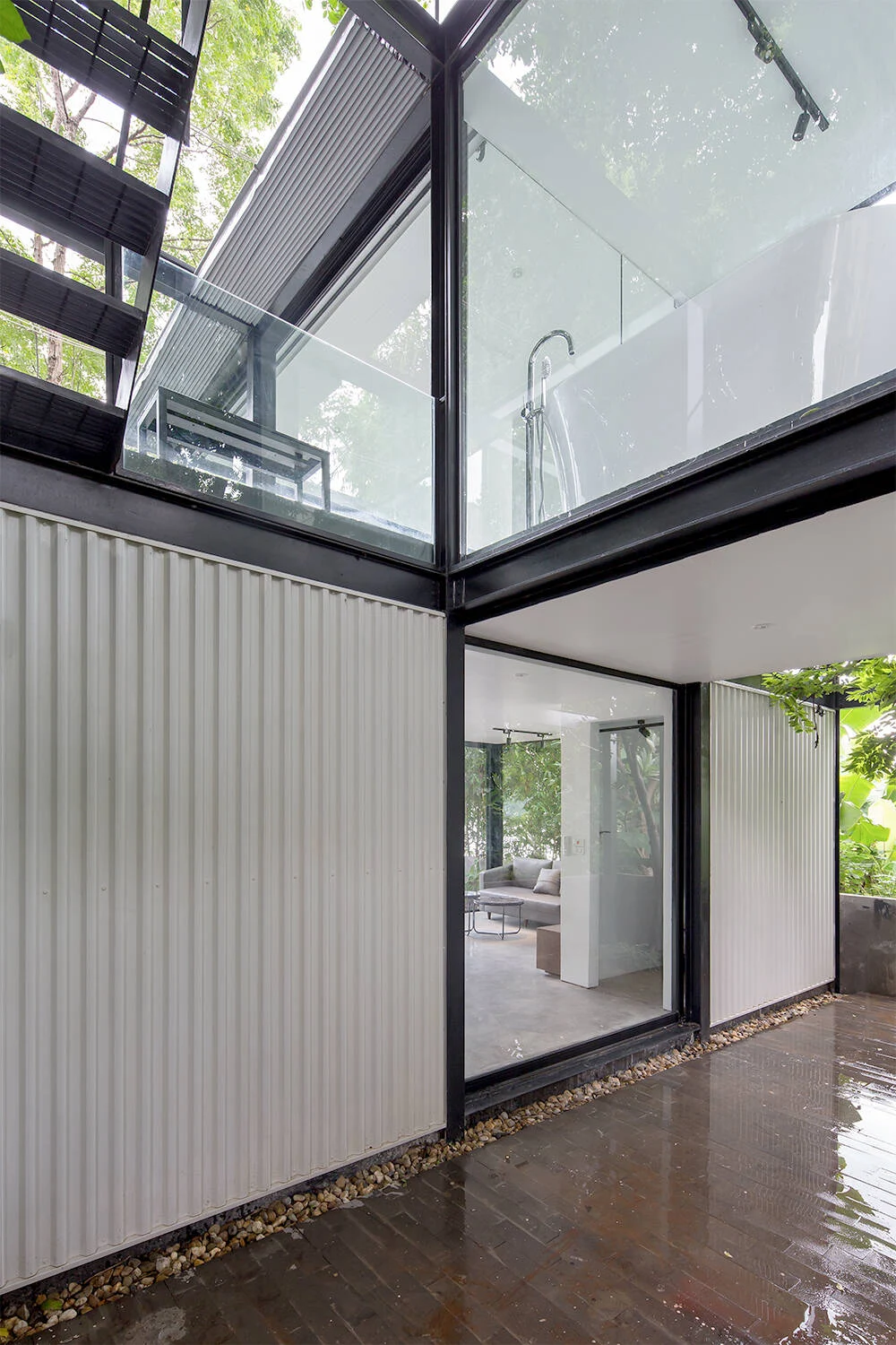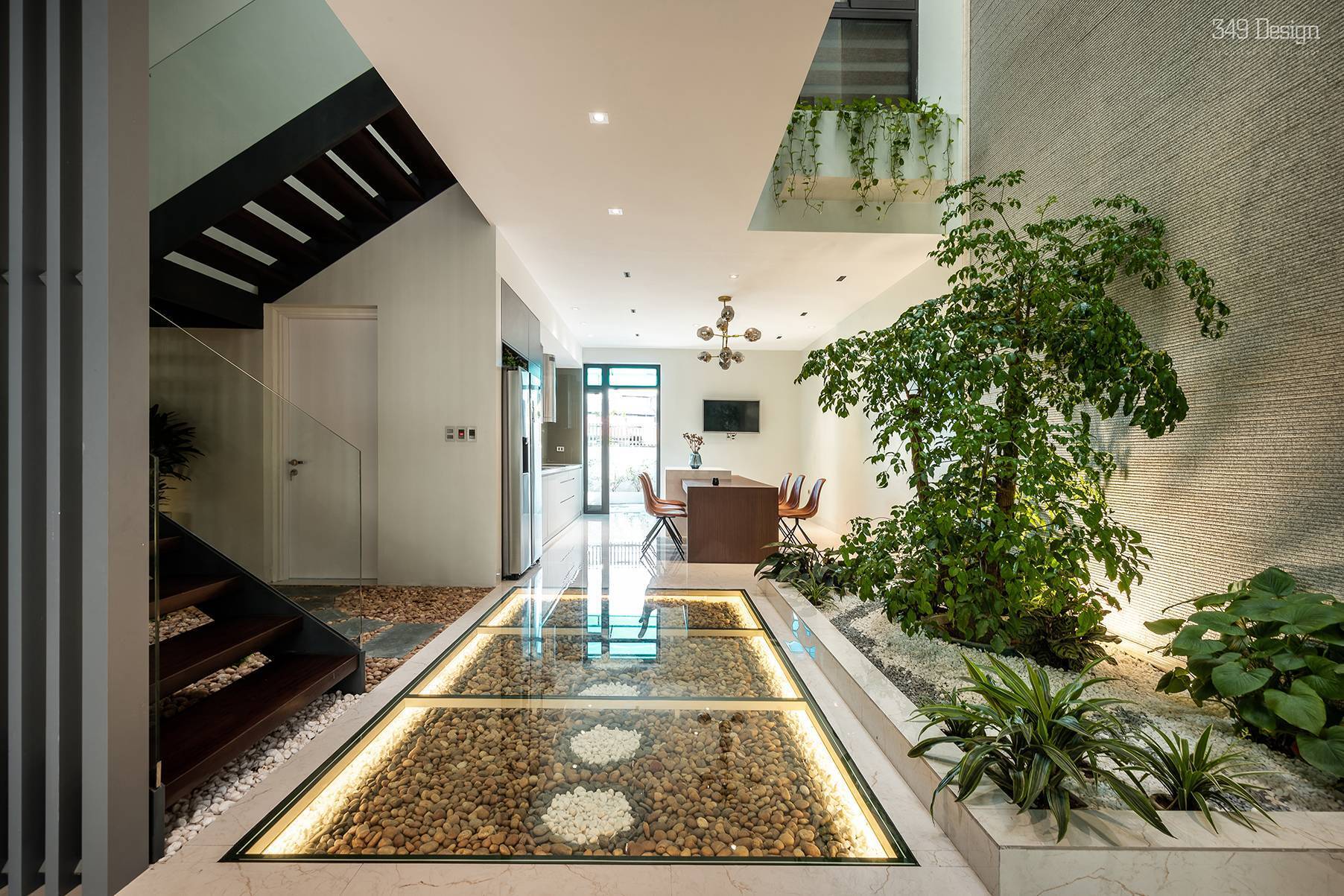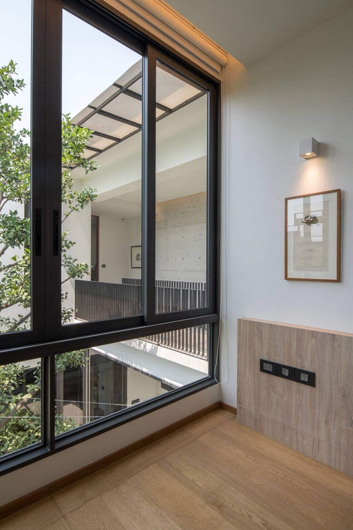 Một trong những giá trị nổi bật của vách kính siêu rộng là khả năng xóa nhòa ranh giới giữa trong và ngoài nhà. Khi kết hợp cùng sân vườn, ban công hoặc khoảng xanh, vách kính tạo cảm giác không gian được mở rộng cả về chiều ngang lẫn chiều sâu. Tầm nhìn không bị che chắn giúp ngôi nhà trở nên thoáng đãng, nhẹ nhàng hơn, đặc biệt phù hợp với những căn nhà có diện tích vừa và nhỏ. Đây cũng là yếu tố giúp không gian sống trở nên thư thái và gần gũi thiên nhiên hơn.