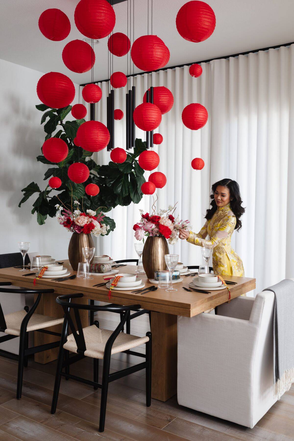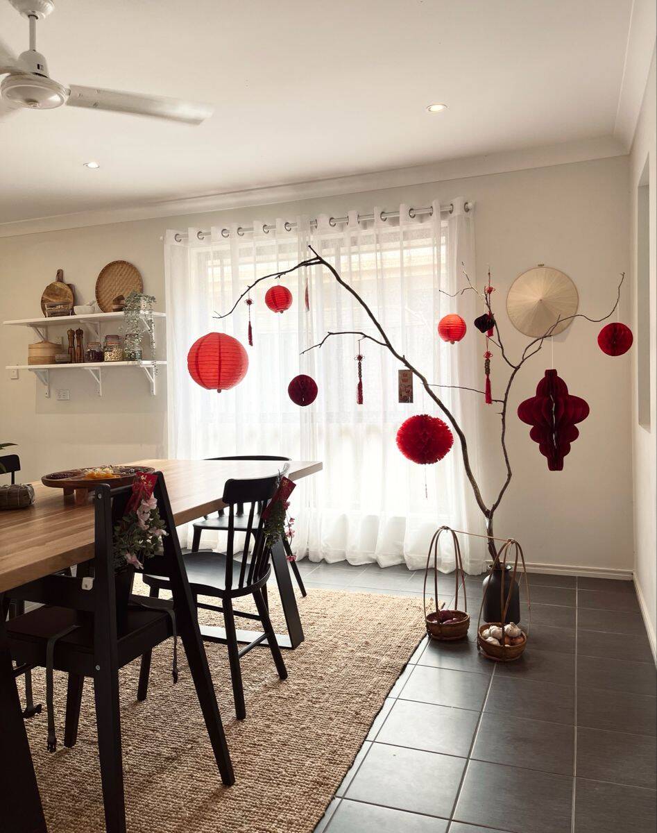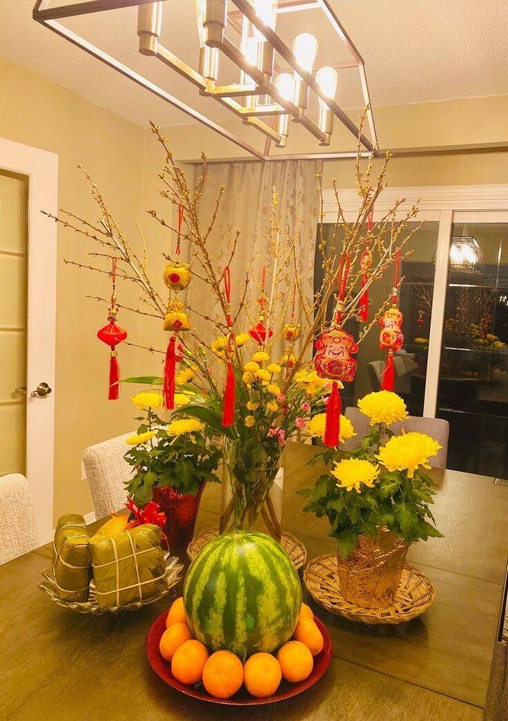 Góc chụp ảnh Tết tối giản, hiện đại