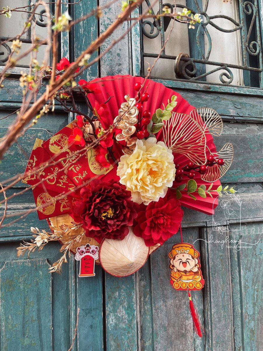 Trang trí cửa nhà Tết bằng phụ kiện treo trang trí