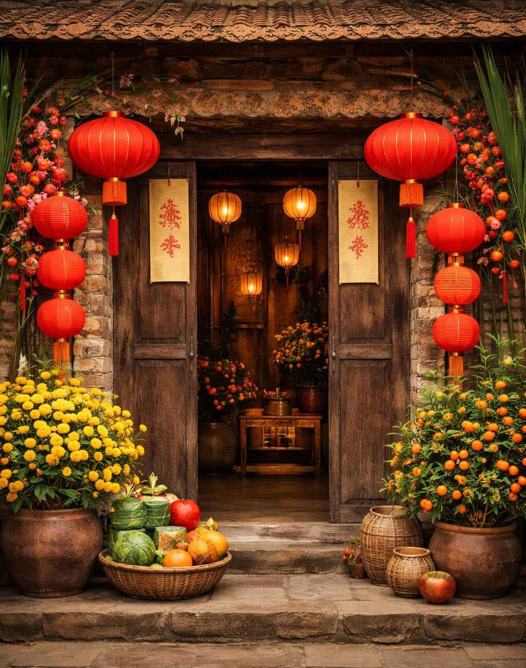 Cửa nhà là nơi đón những vị khách đầu tiên trong năm mới, đồng thời mang ý nghĩa khởi đầu cho tài lộc và may mắn. Trang trí cửa nhà Tết Bính Ngọ 2026 vì thế không chỉ cần đẹp mắt mà còn hài hòa với không gian sống, tạo cảm giác ấm áp, rộn ràng ngay từ khoảnh khắc bước vào nhà.