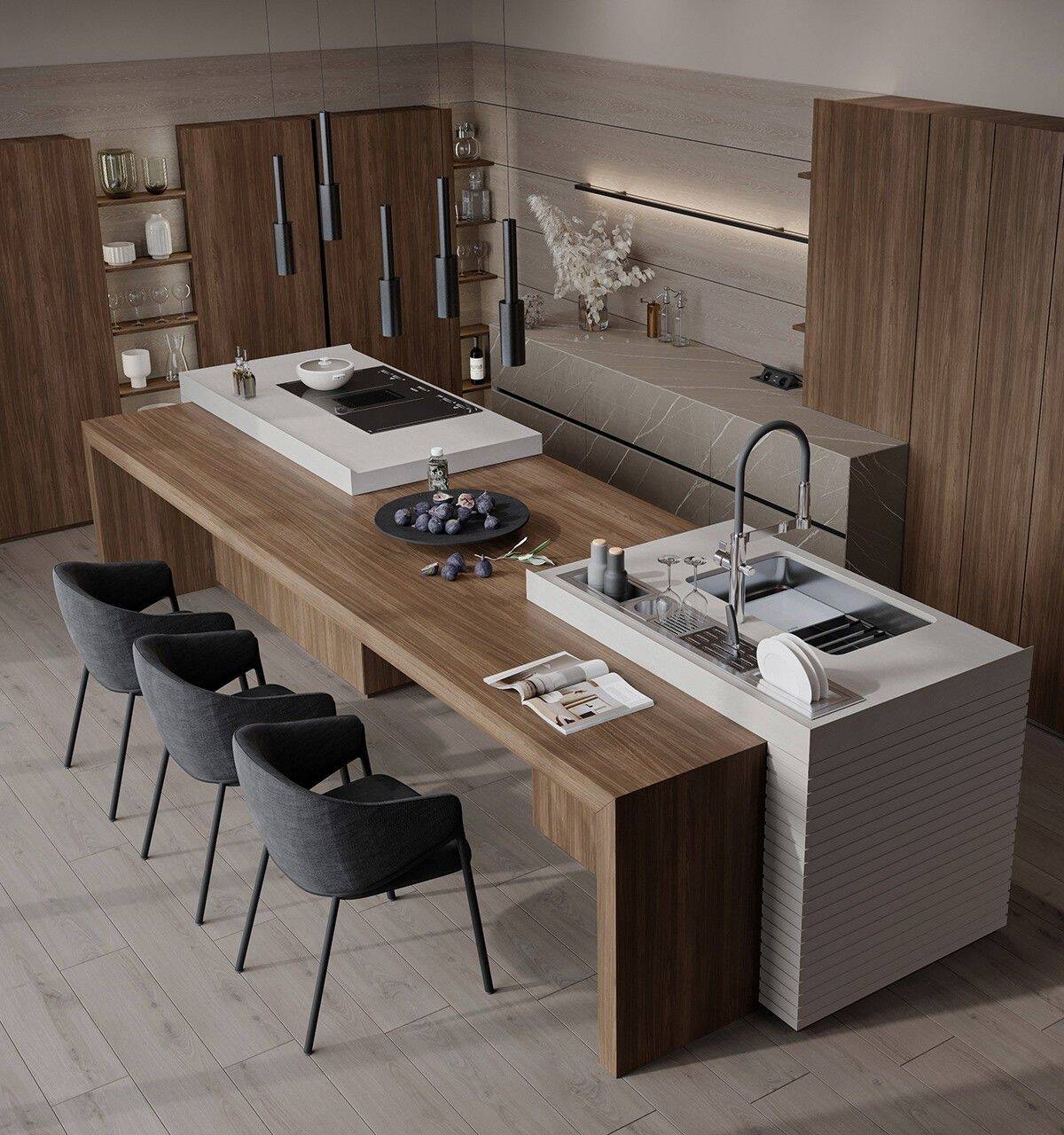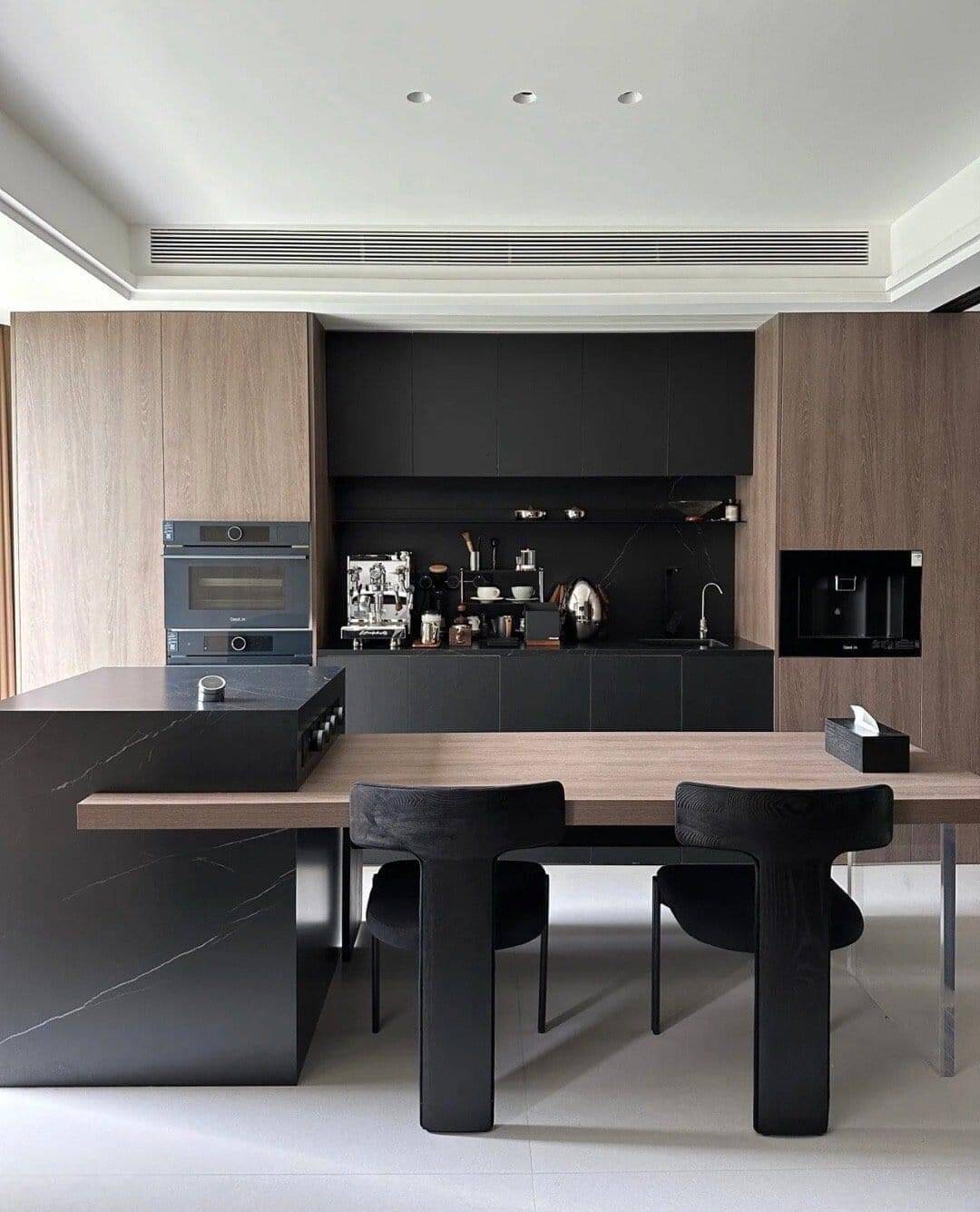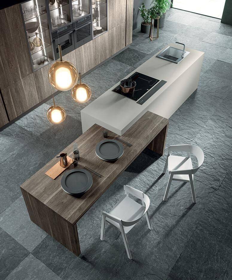 Trong các căn hộ và nhà phố hiện nay, tối ưu diện tích bếp là ưu tiên hàng đầu. Bàn đảo kết hợp bàn ăn trở thành giải pháp thông minh khi vừa đáp ứng công năng nấu nướng, vừa thay thế bàn ăn truyền thống cồng kềnh. Không chỉ tiết kiệm không gian, thiết kế này còn mang lại sự gọn gàng và tính thẩm mỹ cao cho khu vực bếp.