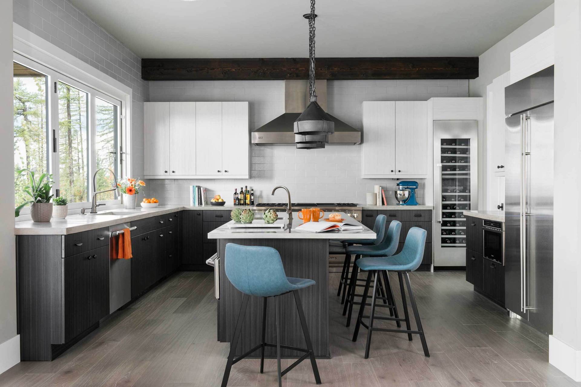Thiết kế chữ L cho phép tận dụng các góc bếp vốn khó sử dụng. Ngoài công năng làm bàn ăn, phần đảo còn có thể tích hợp thêm ngăn tủ, kệ lưu trữ, giúp không gian bếp gọn gàng và khoa học hơn.
