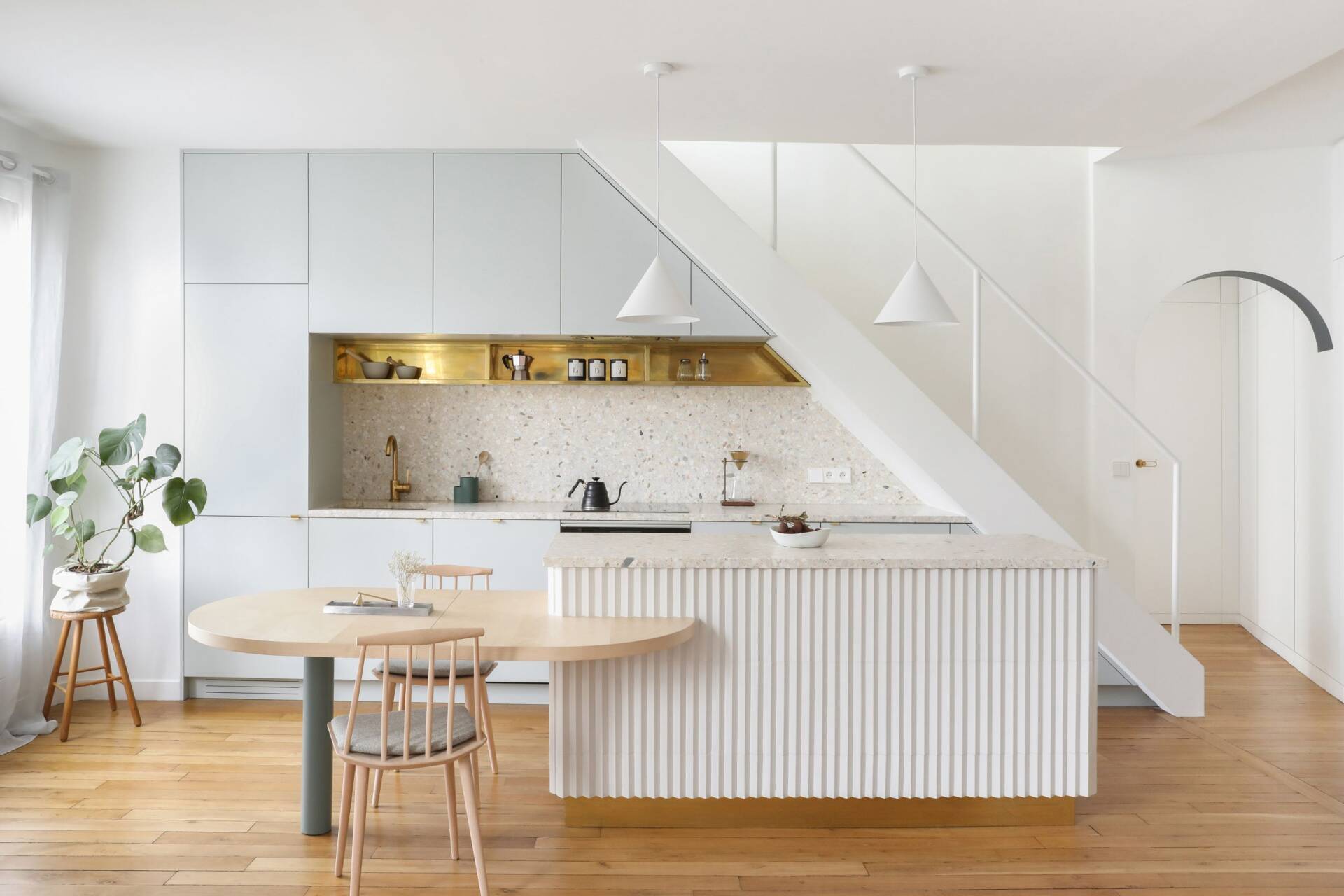 Bàn đảo kết hợp bàn ăn liền khối - Giải pháp gọn gàng cho bếp nhỏ