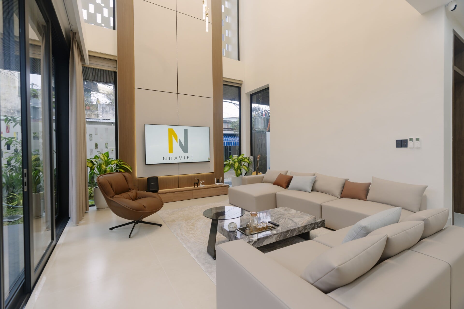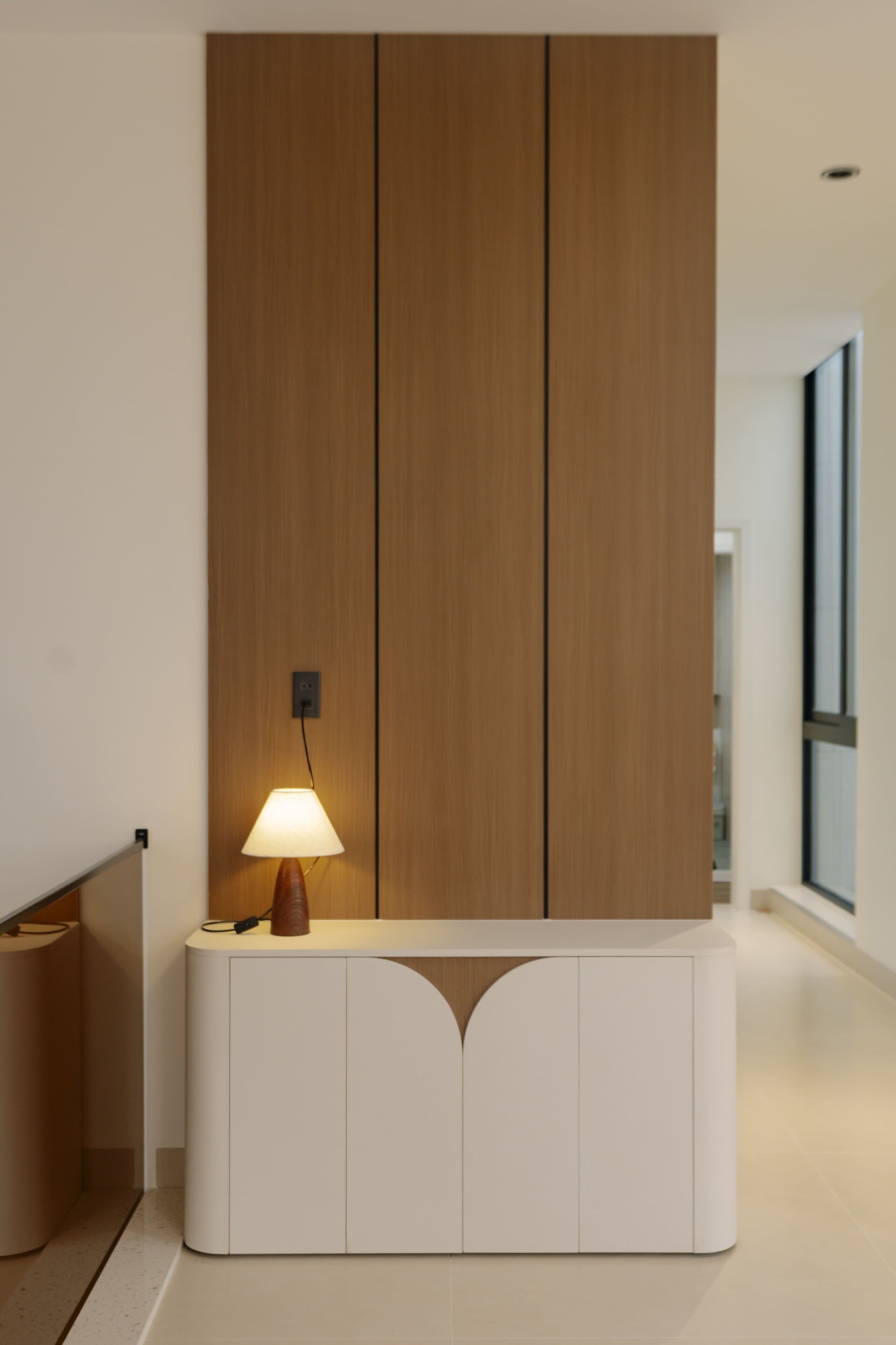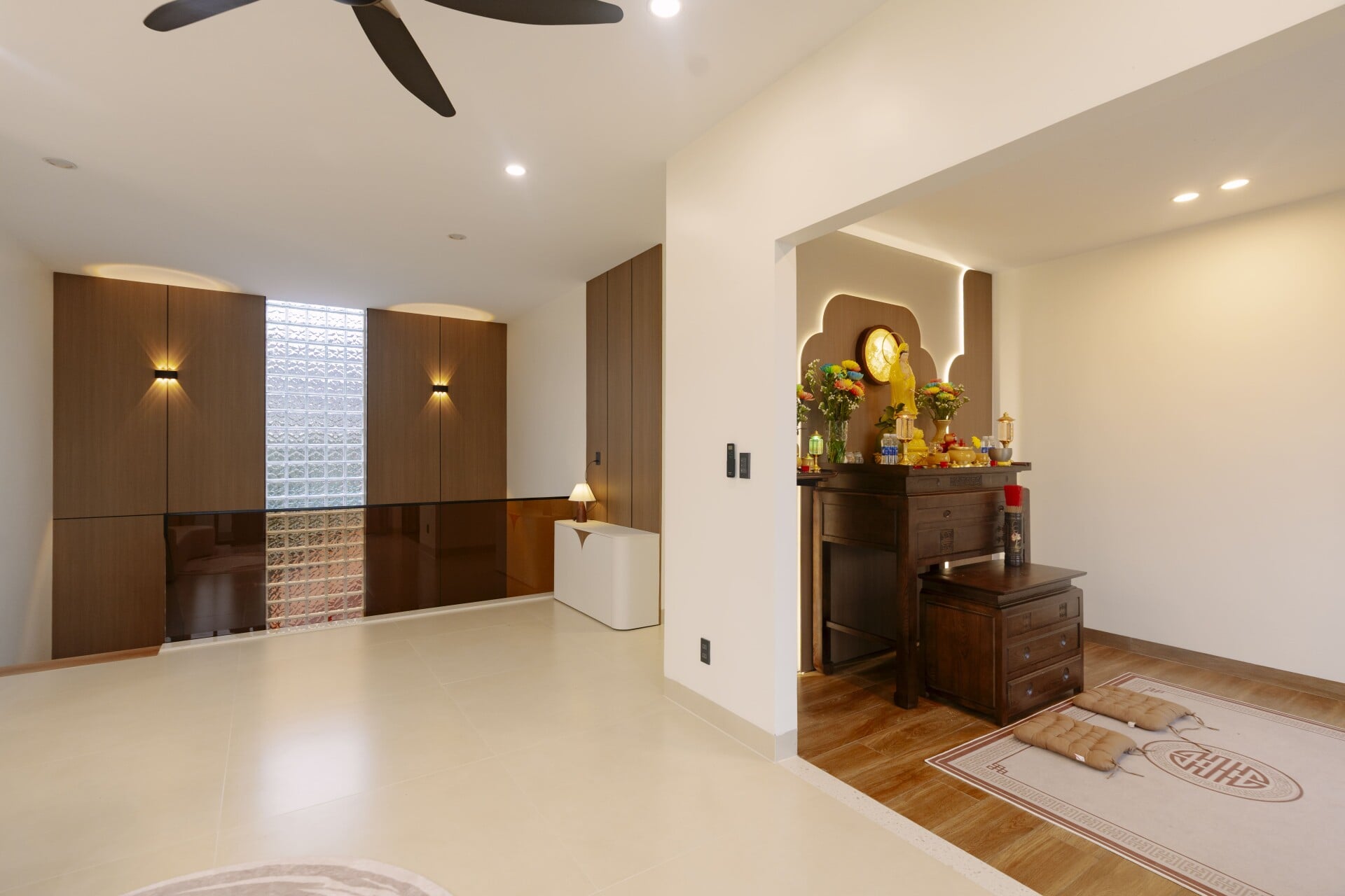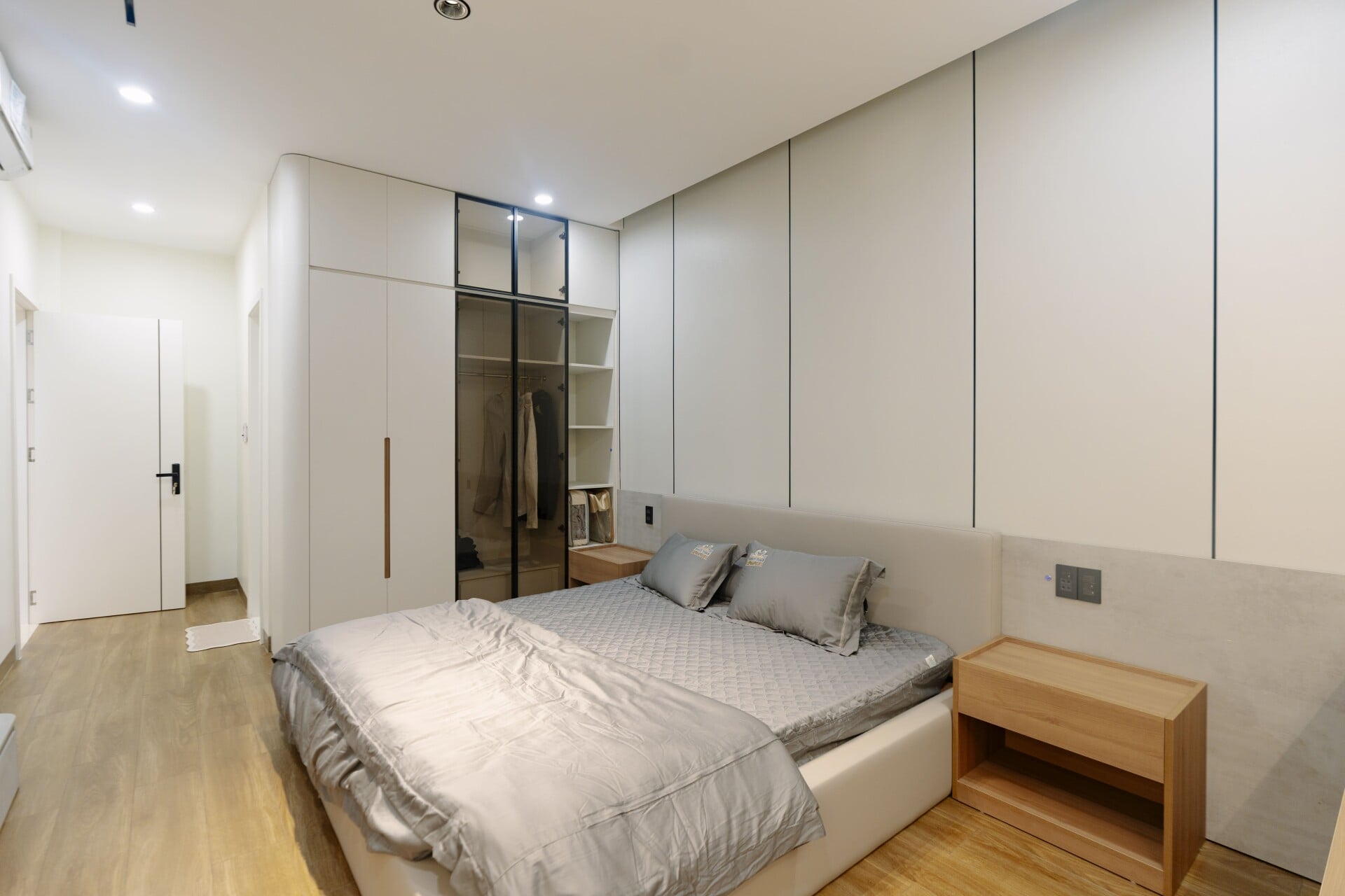Sử dụng các mảng gỗ với tông màu tự nhiên, trung tính, từ các hệ tủ tích hợp cho các phòng, cho đến những chi tiết nội thất ở khu vực đảo bếp hay mảng ốp tường, đều trở thành “nền nhạc” dịu dàng, nâng đỡ và tôn vinh phong cách sống tinh tế hiện đại của gia chủ.
