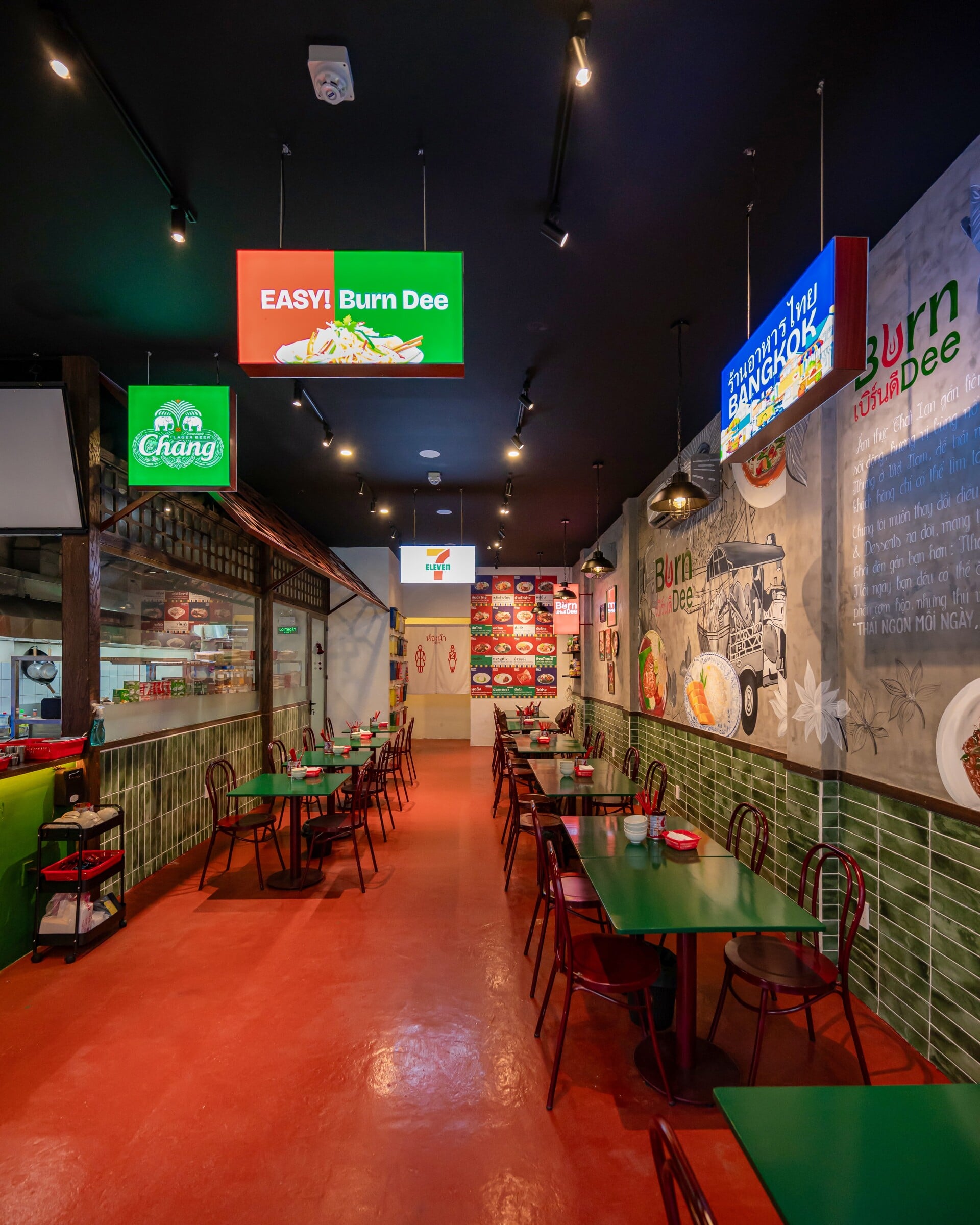 Tổng thể không gian Burn Dee không cầu kỳ hay hào nhoáng, mà tập trung tái hiện đúng tinh thần ẩm thực Thái đường phố: chân thật, sôi động và đầy cảm xúc. Đây không chỉ là nơi thưởng thức món ăn, mà còn là trải nghiệm thị giác và không khí rất “Bangkok”, được đặt khéo léo giữa lòng Đà Nẵng.