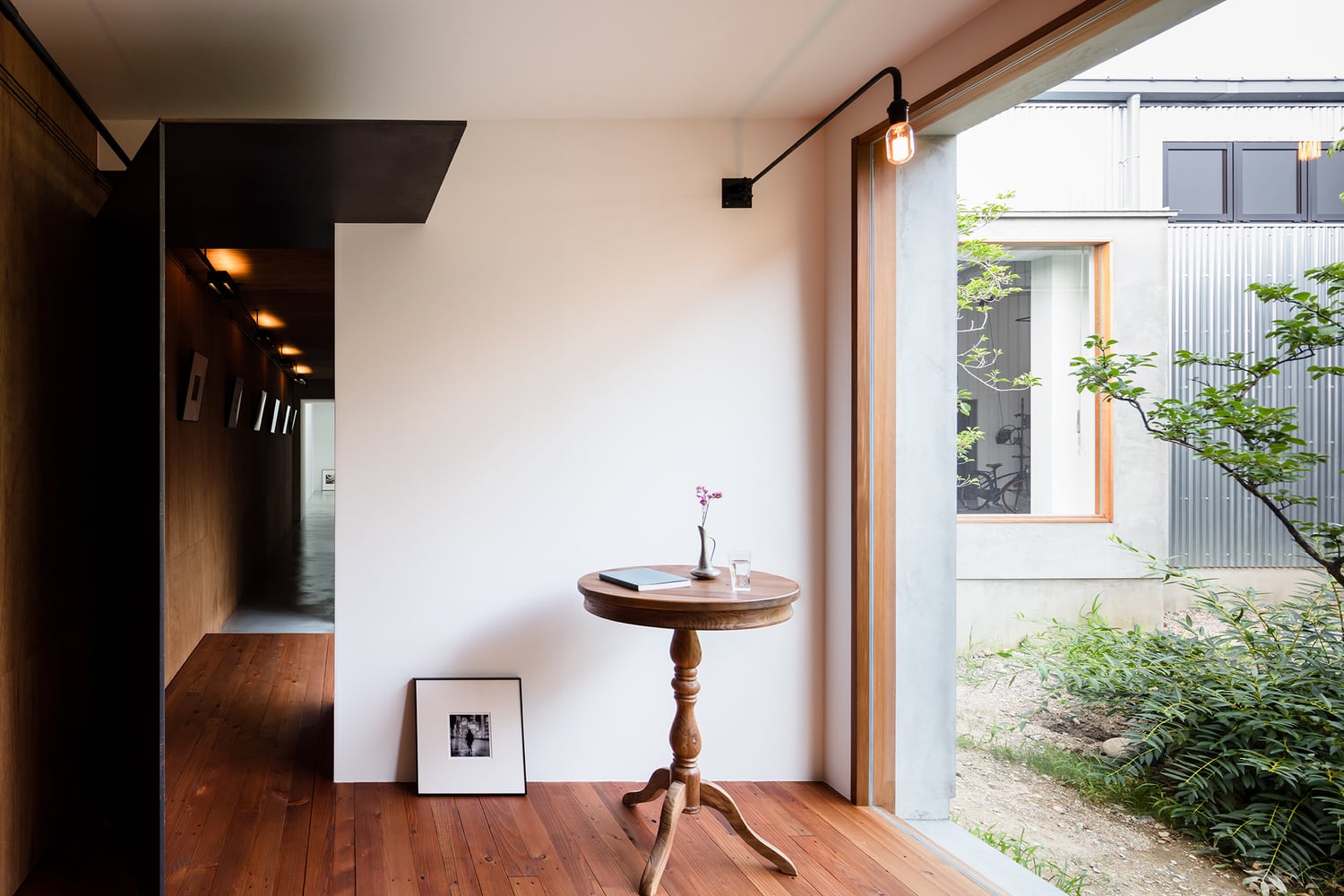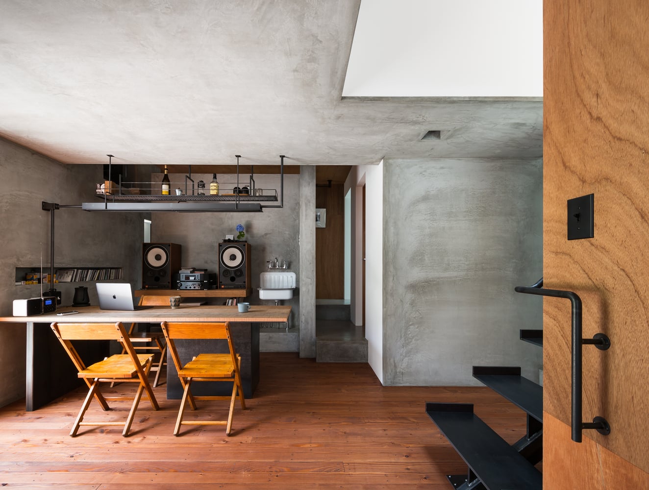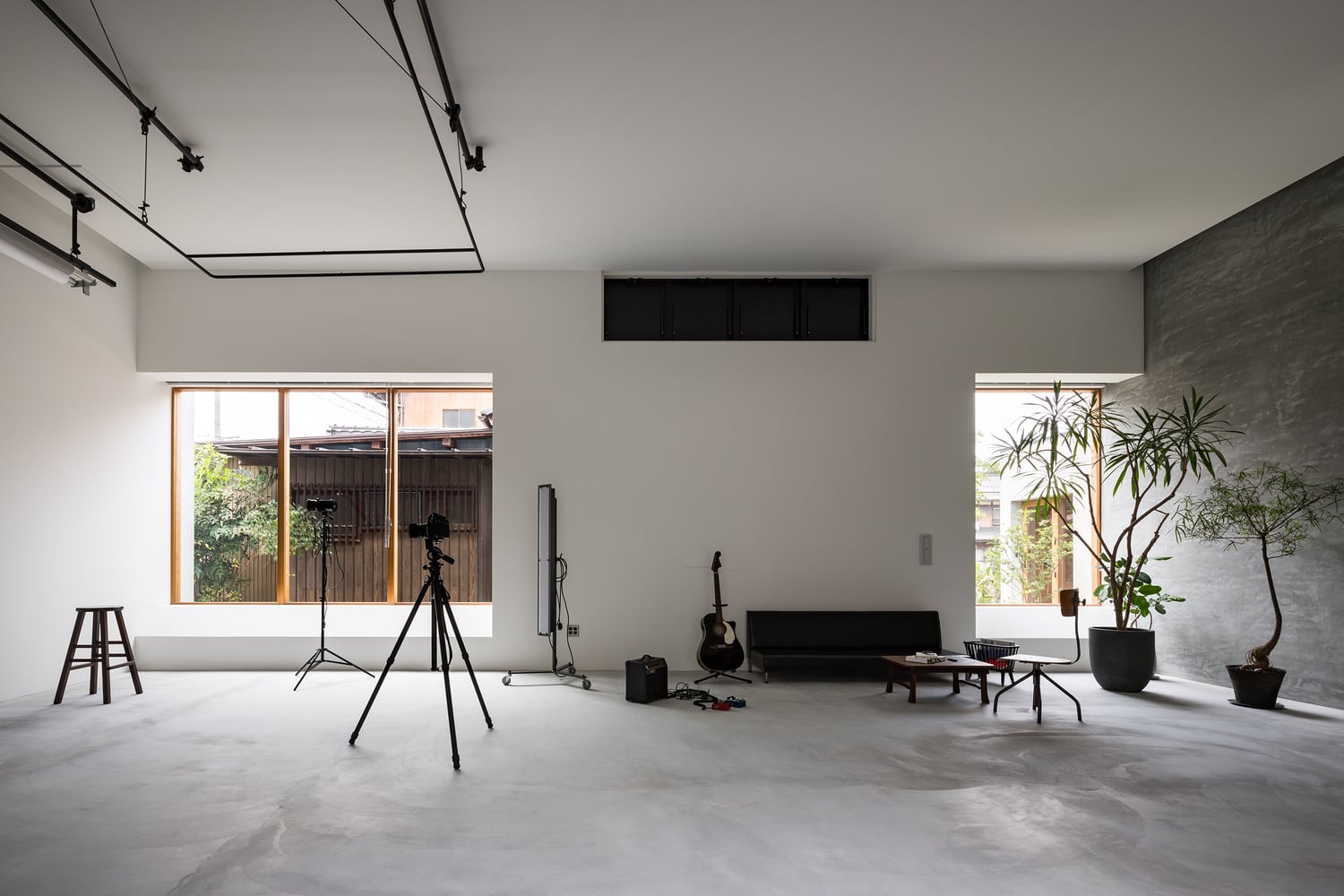 Ngôi nhà hiện hữu nổi bật trên con đường chạy qua khu dân cư ở vùng Shiga của nước Nhật. Không giống như những căn nhà gỗ mái ngói truyền thống với gam màu trầm bình dị xung quanh, Kouichi Kimura đã khoác lên cho “nhà của thợ chụp ảnh” một vẻ ngoài hấp dẫn hơn nhờ mặt tiền kết hợp giữa bê tông và thép mạ kẽm phản chiếu ánh sáng. Tất cả tạo nên một sự tương phản thú vị cho bất kì ai vô tình được chiêm ngưỡng.