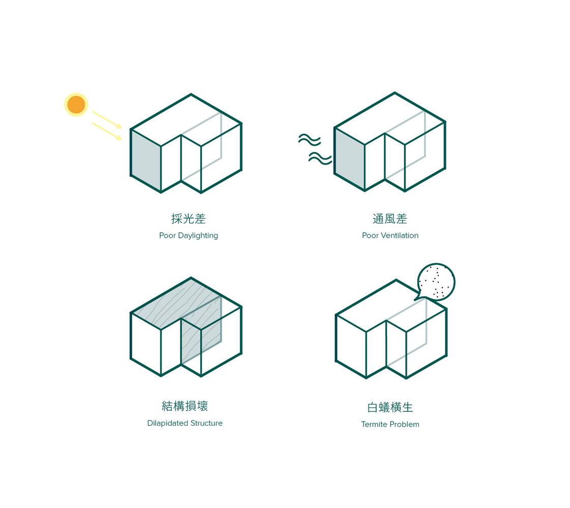 Do đã quá lâu đời nên ngôi nhà gặp vấn đề thiếu sáng, ẩm mốc nghiêm trọng. KTS đã nâng cấp lại kết cấu ngôi nhà, đồng thời mở ra những không gian chung để kết nối tối đa các thành viên. Ngoài ra, một khu vực đặc biệt cũng được tạo ra để mọi người có thể tưởng nhớ về người ông thân yêu của mình.