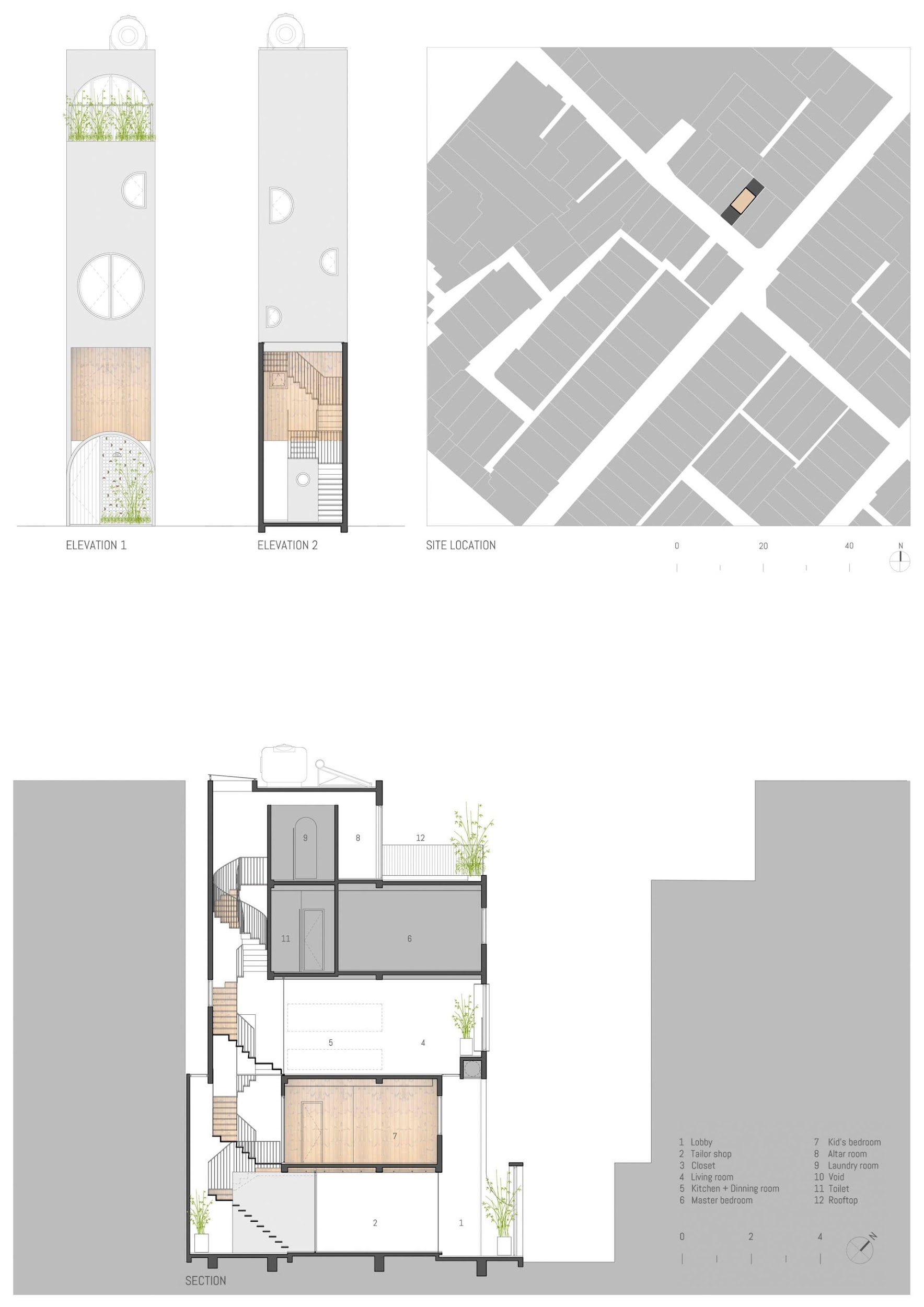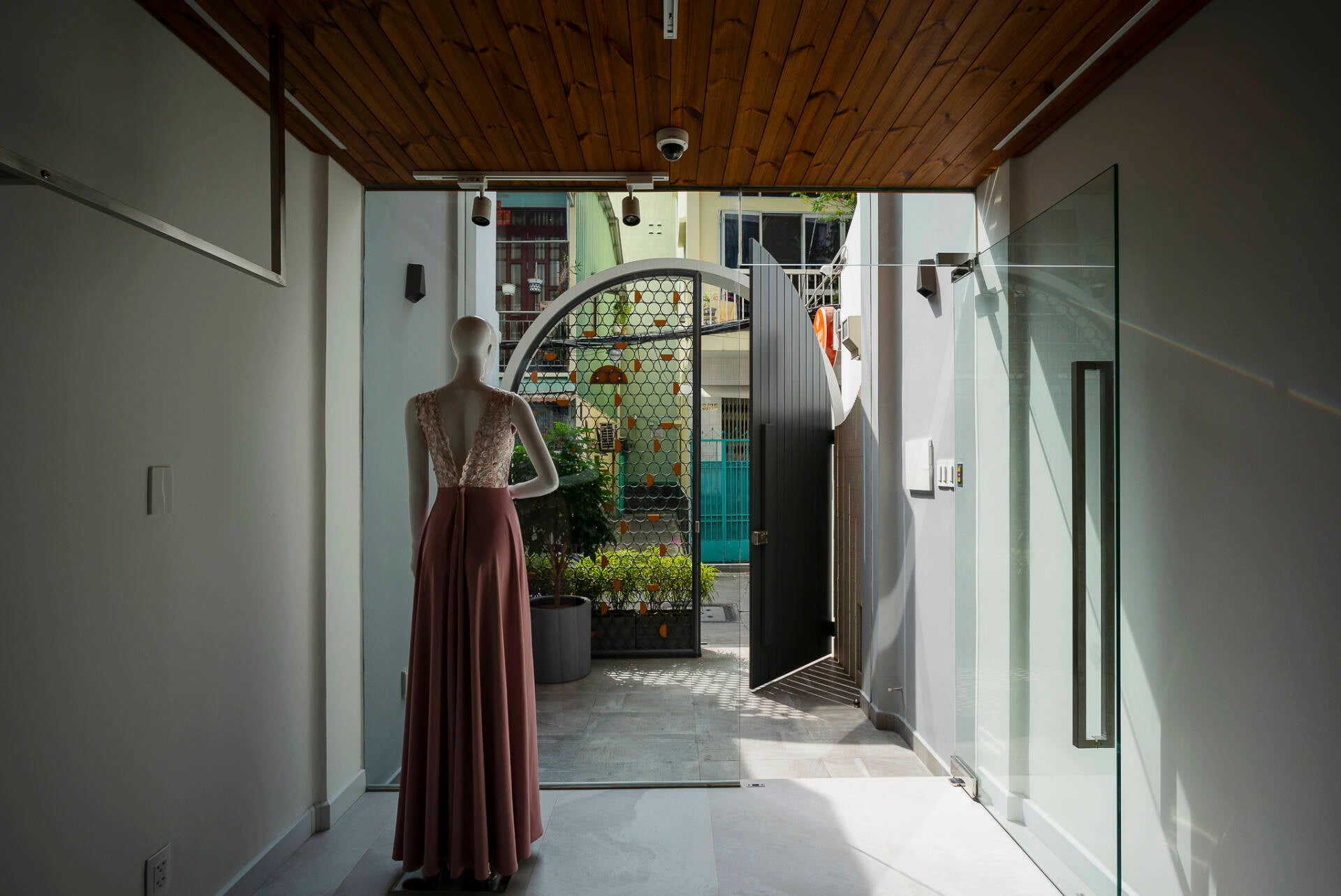 Nằm trên khu đất nhỏ chỉ 32m2 trong một con hẻm nhỏ, K House được xây dựng vỏn vẹn 26m2 - một dạng nhà điển hình của nhà trong hẻm đô thị tại Quận 1, với nhu cầu vừa làm một tiệm may cho người em gái, vừa là nhà ở cho gia đình anh chị và cháu. Bởi vậy, nhiệm vụ hàng đầu của nhóm KTS là tối ưu hóa diện tích, đảm bảo riêng tư và giúp không gian sống trong nhà 26m2 luôn thoáng sáng.