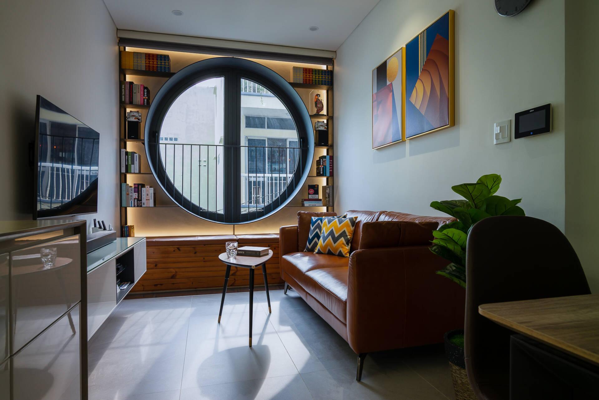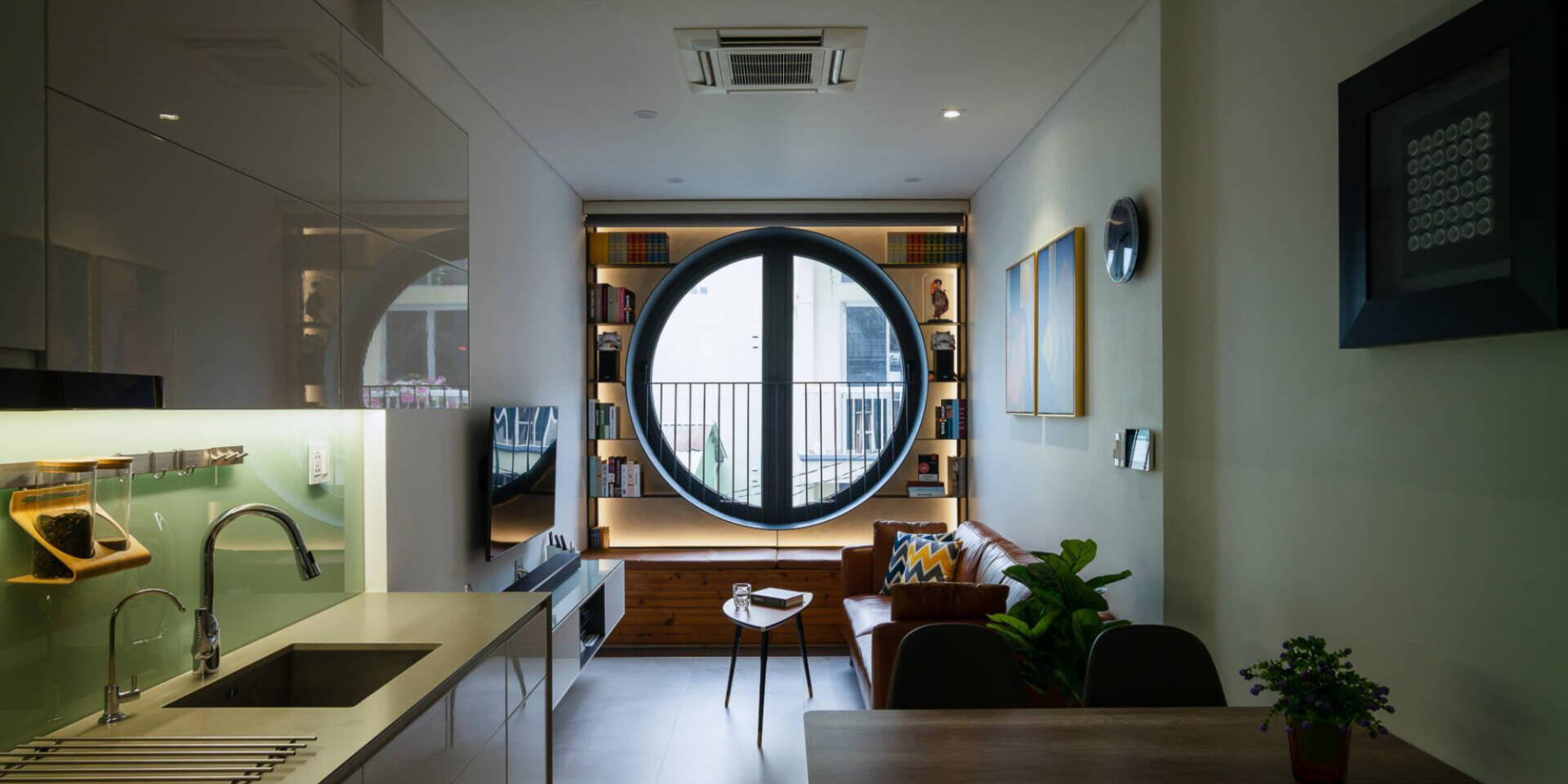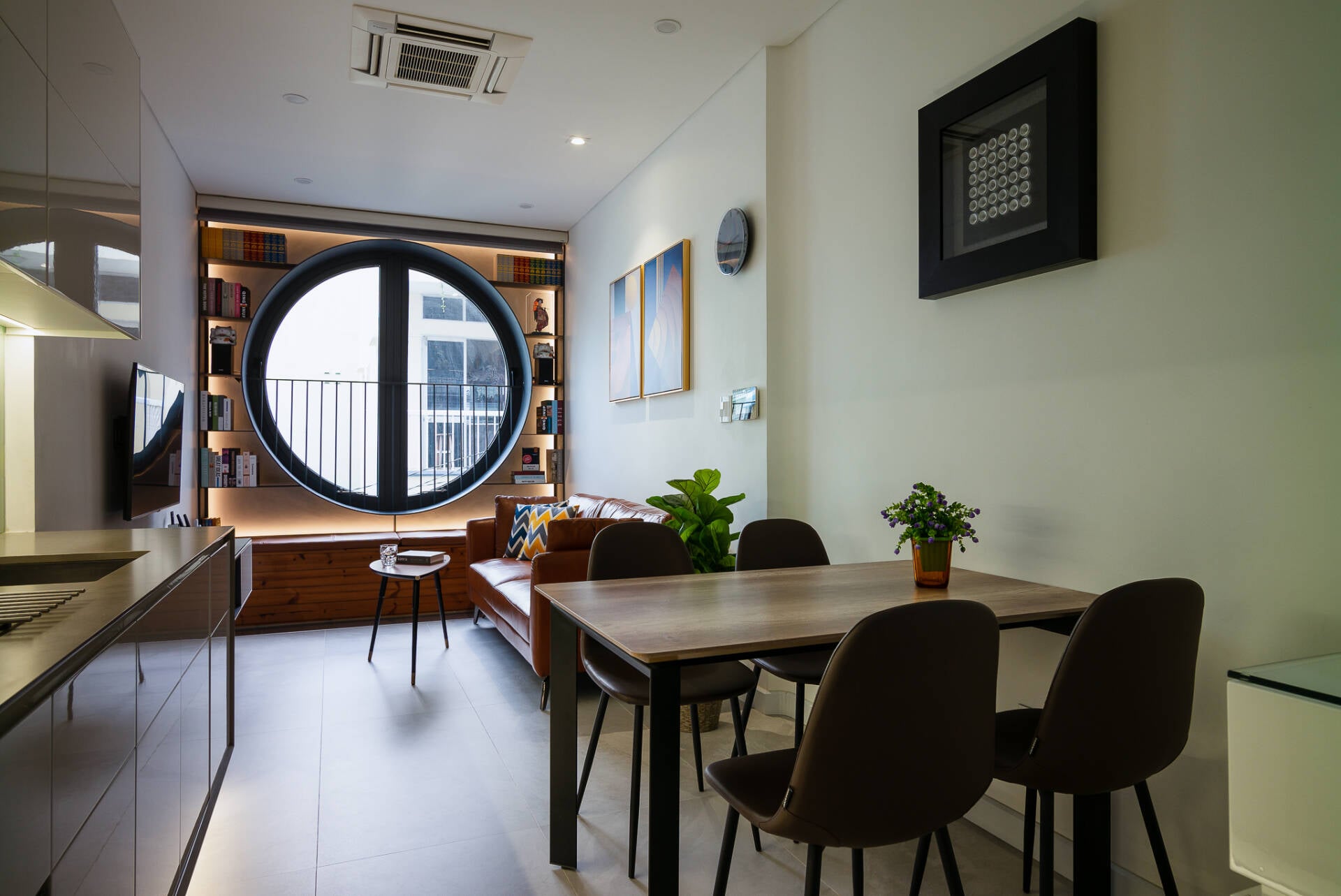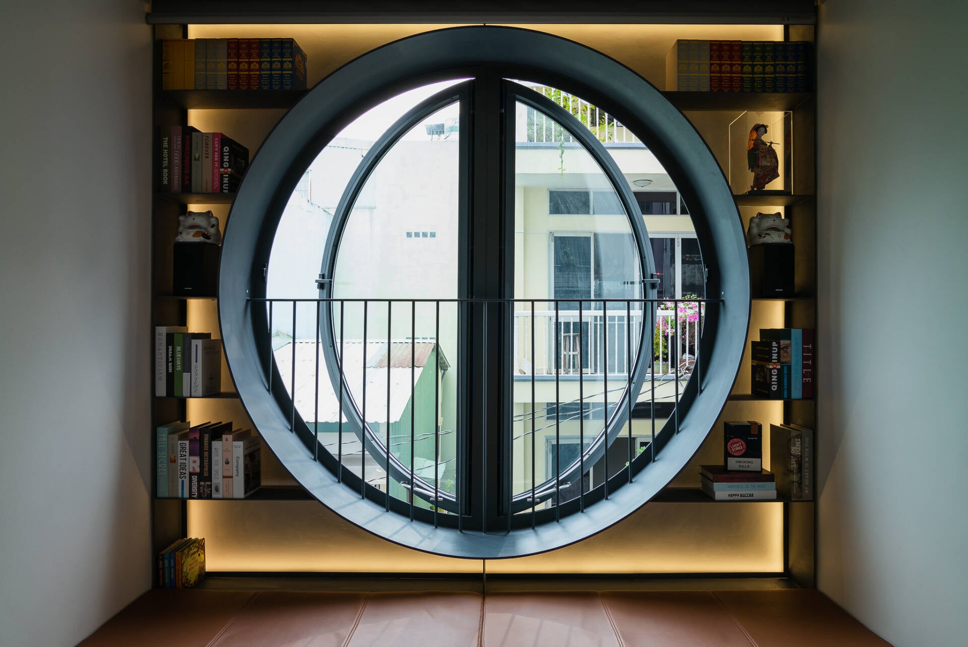 Ô cửa sổ tròn thường được hé ra để đón gió và là khu vực ngắm cảnh yêu thích của cả gia đình - điều hiếm gặp ở các nhà trong hẻm đông đúc