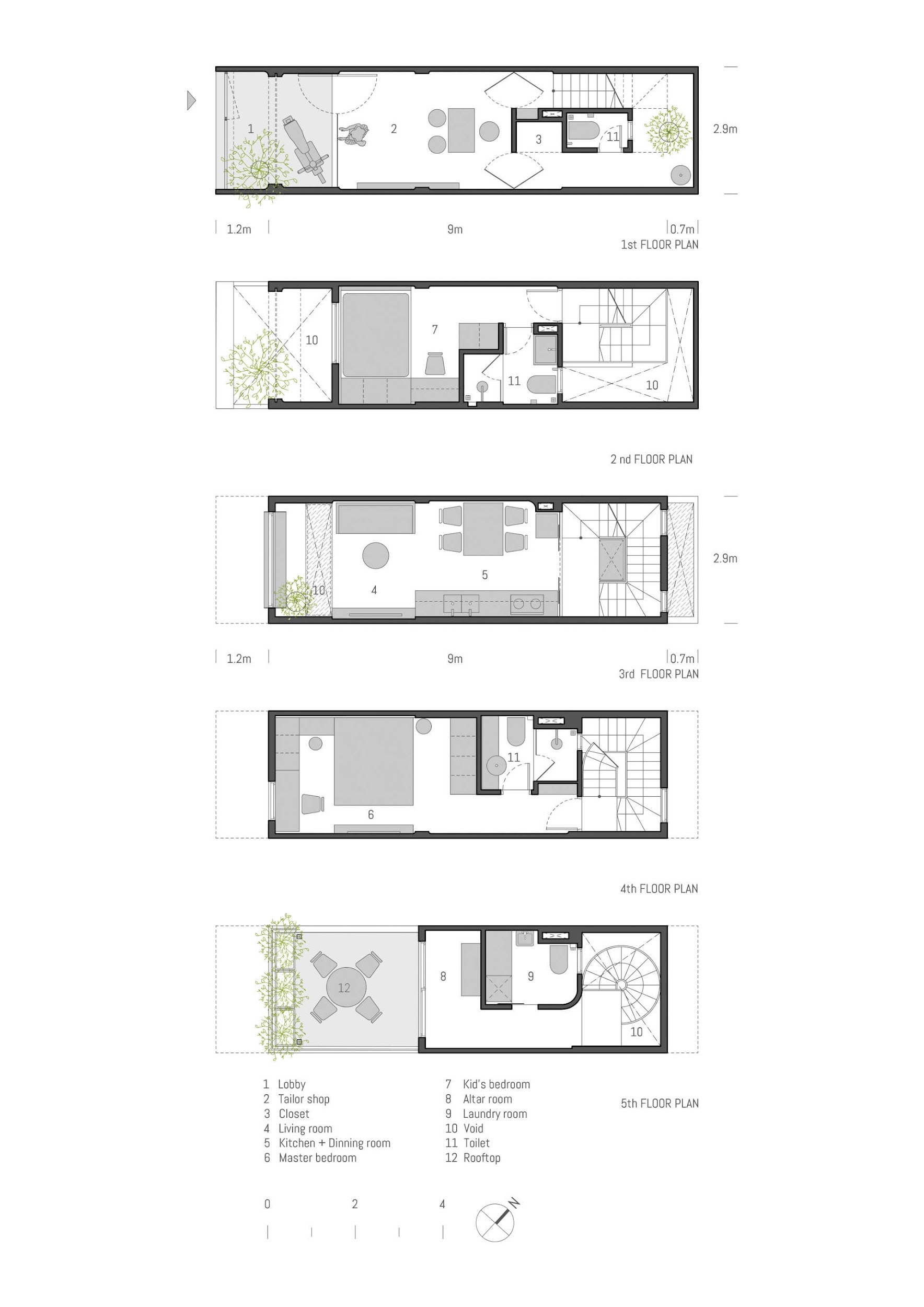 Vì diện tích nhỏ nên K House được xây dựng 5 tầng để đảm bảo đầy đủ nhu cầu của các thành viên