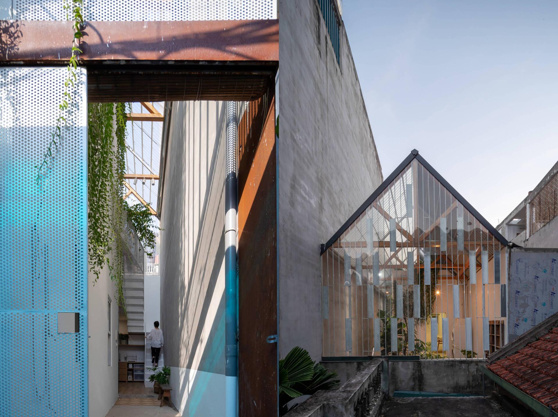 1. Nhà 40m2 trong ngõ sử dụng tấm lợp trong suốt và hành lang để lấy sáng
