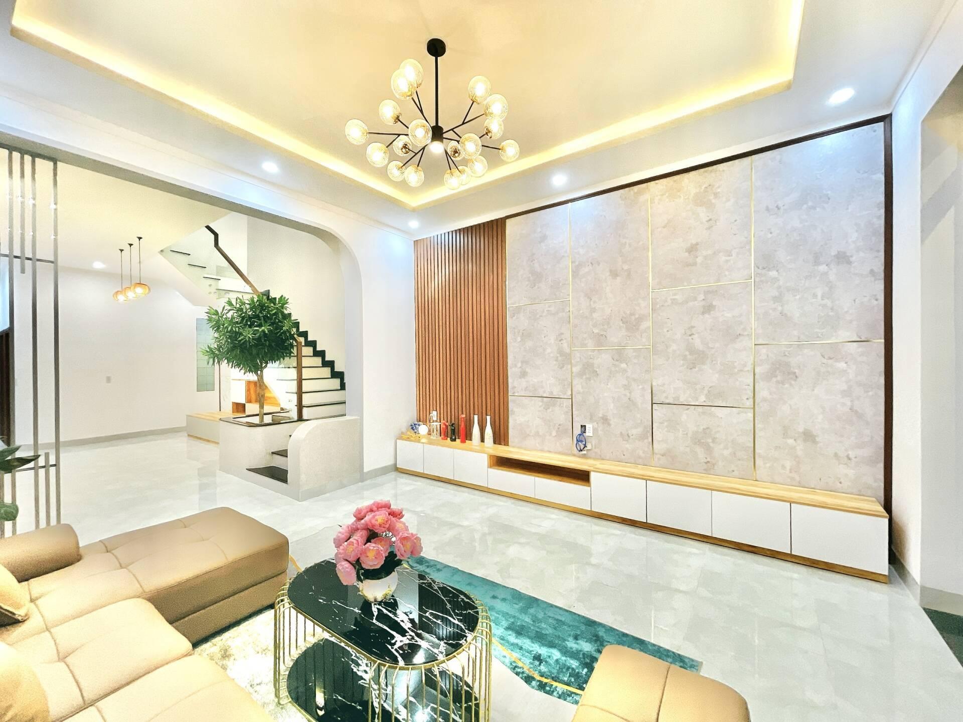 Ngôi nhà sử dụng nhiều vật liệu đại diện cho sự sang trọng, cao cấp như: đá hoa cương, nội thất đồ đồng, đá cẩm thạch, gỗ, đèn trang trí ánh vàng,...