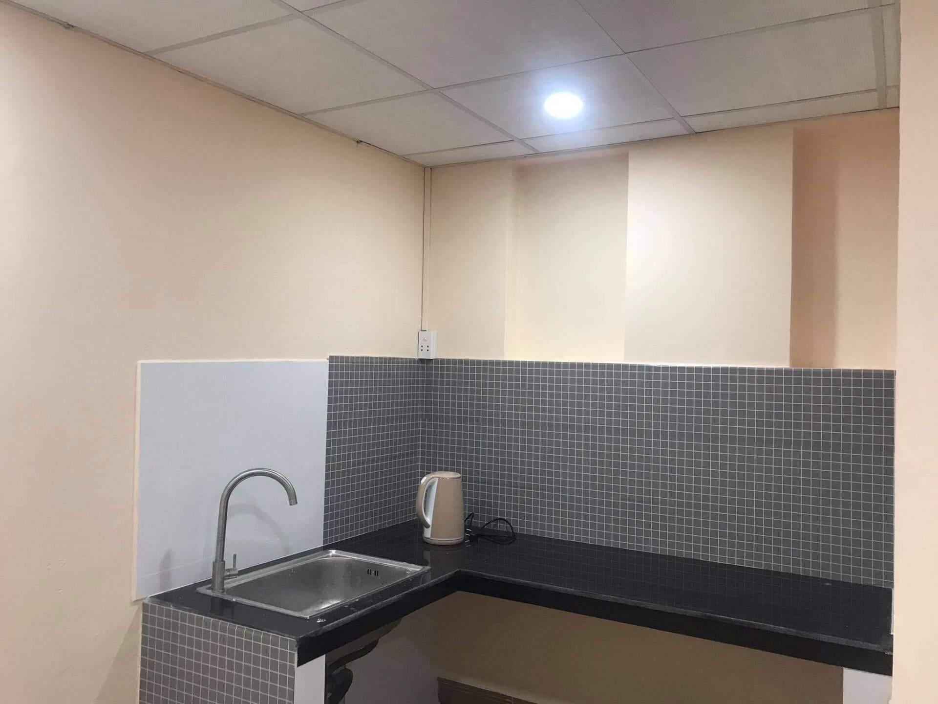 Lúc đầu căn bếp có phần đơn sơ, được chị Ngọc dán decal màu xám