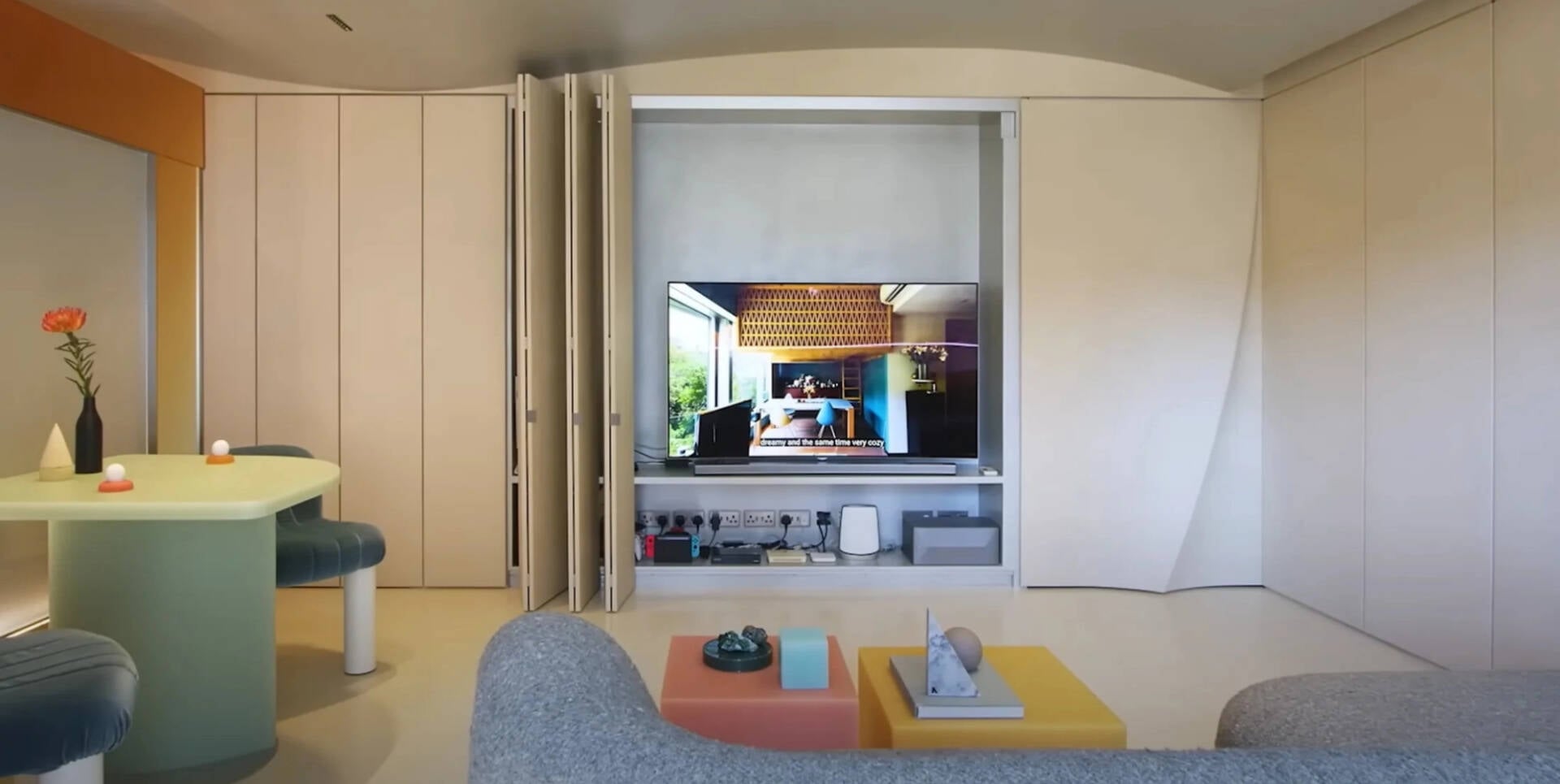 Góc tủ được bo tròn và bày biện một số món đồ trang trí để bớt trống trải, đơn điệu