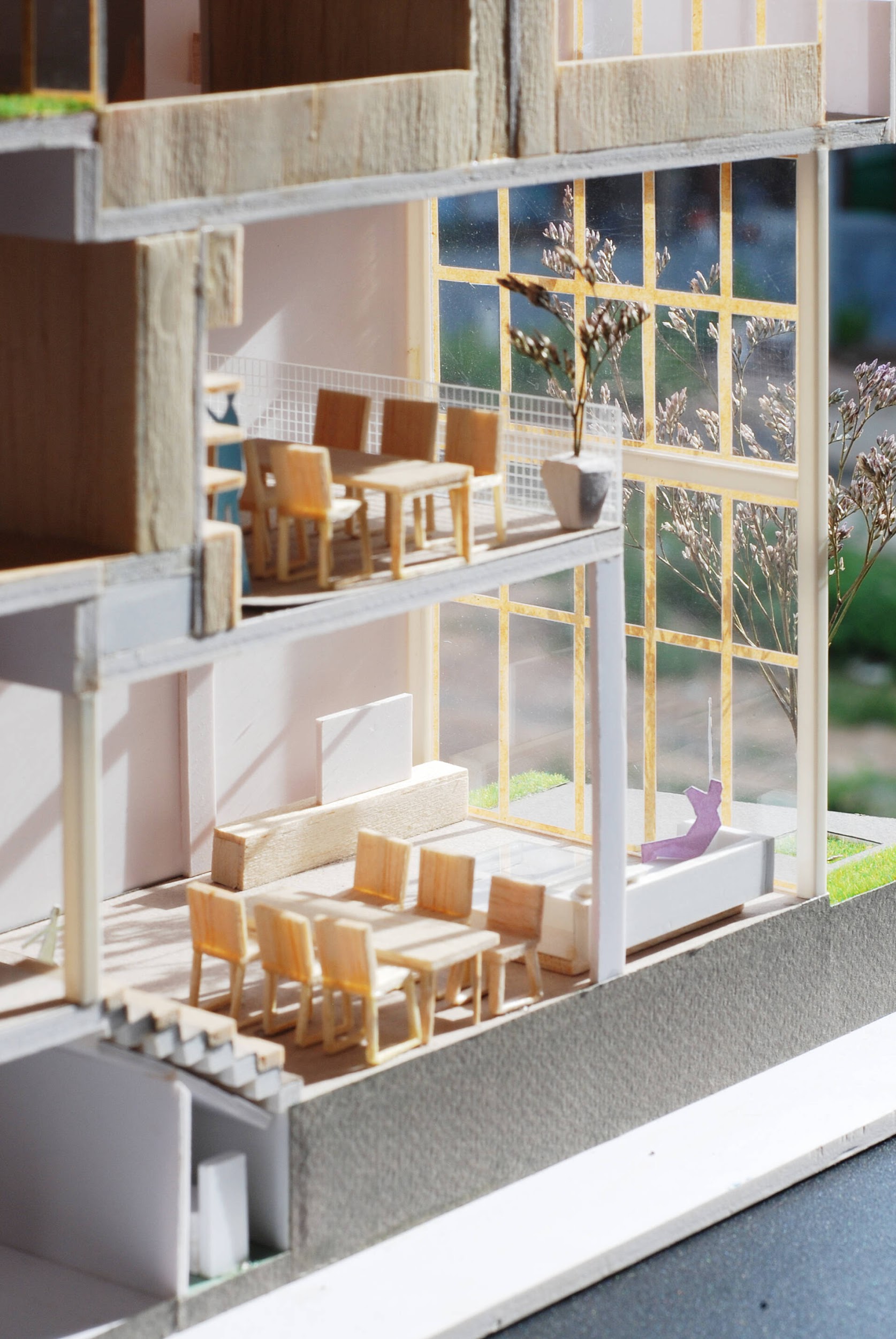 Tuy nhiên, ánh sáng sẽ không quá gay gắt bởi sự tham gia của các không gian đệm như thông tầng, sân, và ban công. Ngoài ra, ngôi nhà ống 4,8x22m sẽ đón được gió mát quanh năm từ cả hai hướng Đông - Tây, len lỏi qua các không gian trước khi thoát ra ở trên mái và cửa mở trên mặt đứng.