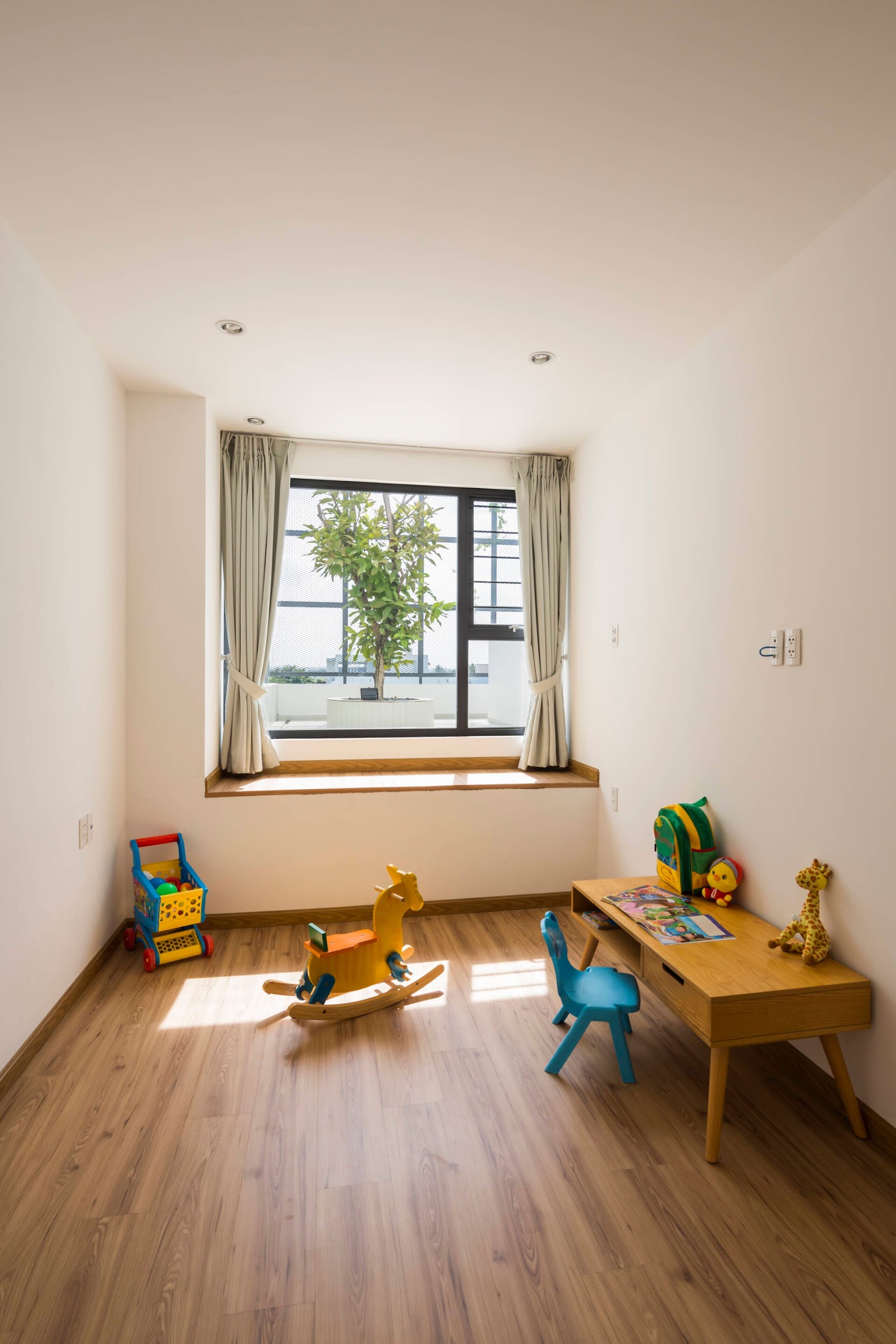 Phòng ngủ dành cho con của gia chủ kết nối với sân thượng của nhà ống