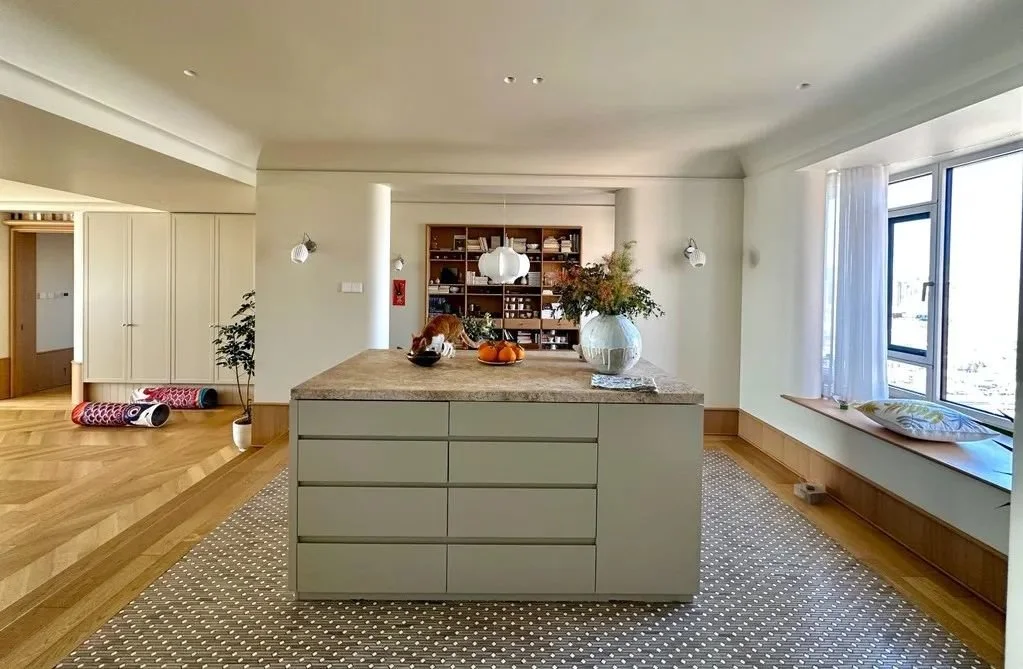 Tọa lạc tại Bắc Kinh, căn hộ 225m2 của nữ blogger chủ đề gia đình nhanh chóng nổi tiếng nhờ vẻ đẹp độc đáo. Đặc biệt, 4 phòng ngủ được phá bỏ, chỉ giữ lại 1 phòng ngủ cho vợ chồng, diện tích còn lại dành hết cho nhu cầu cá nhân và nghỉ ngơi, thư giãn.