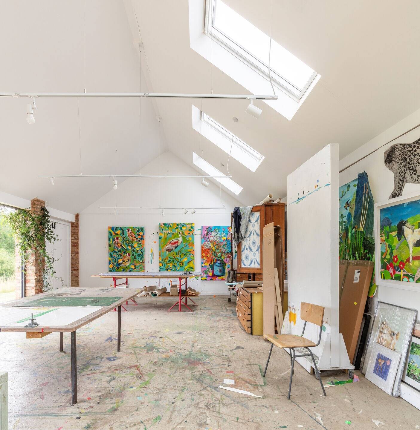 Không gian xưởng vẽ rộng rãi trong Beck Farm & Studio sau khi cải tạo và mở rộng