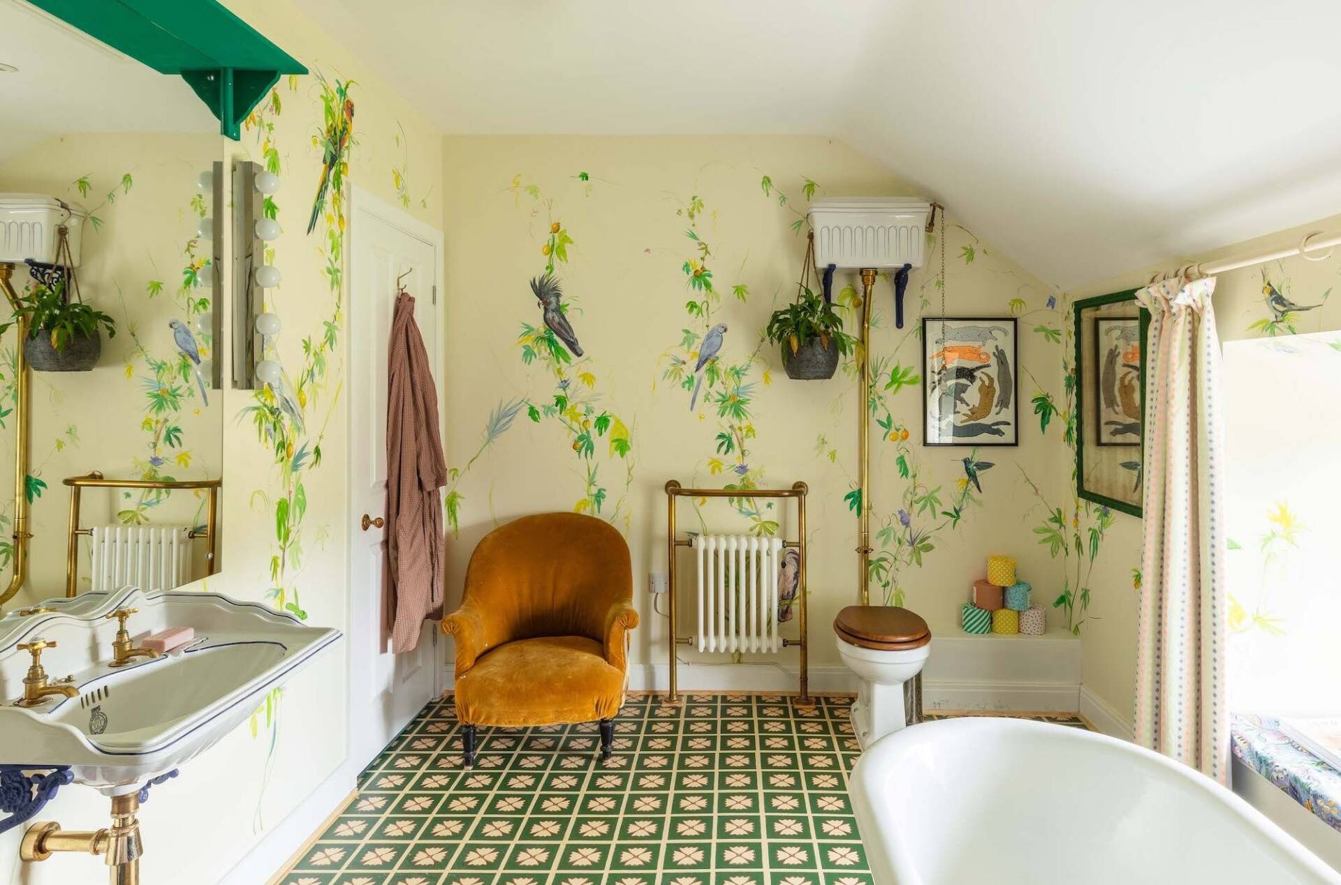 Ghế đơn và hệ đèn trang trí tông màu vàng - cam tô điểm nét tươi tắn cho ngôi nhà vườn