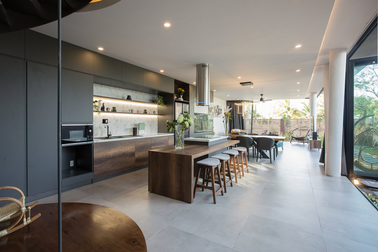 Ngôi nhà này có tổng diện tích 250 mét vuông tại Đà Nẵng và được thiết kế cho một cặp vợ chồng trẻ và hai đứa con nhỏ của họ. Mục tiêu của chúng tôi là tạo ra ngôi nhà thân thiện với môi trường nhất. Ngôi nhà này tận dụng các nguồn năng lượng tự nhiên để hạn chế việc sử dụng năng lượng hóa thạch; Nó cũng làm giảm một phần tài nguyên nước.