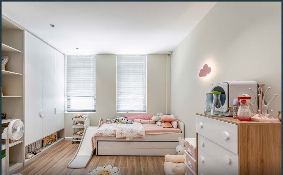 Nếu phòng Master là sự lịch lãm, thì phòng ngủ của con gái lại là một thế giới hoàn toàn khác: ngọt ngào và mộng mơ. Căn phòng được thi công với tone màu hồng chủ đạo, kết hợp hài hòa cùng nội thất hiện đại, mang lại cảm giác ấm áp, vui tươi. Đây là không gian riêng tư lý tưởng, nơi bé có thể thỏa sức học tập, nghỉ ngơi và phát huy sự sáng tạo trong môi trường yêu thích của mình.