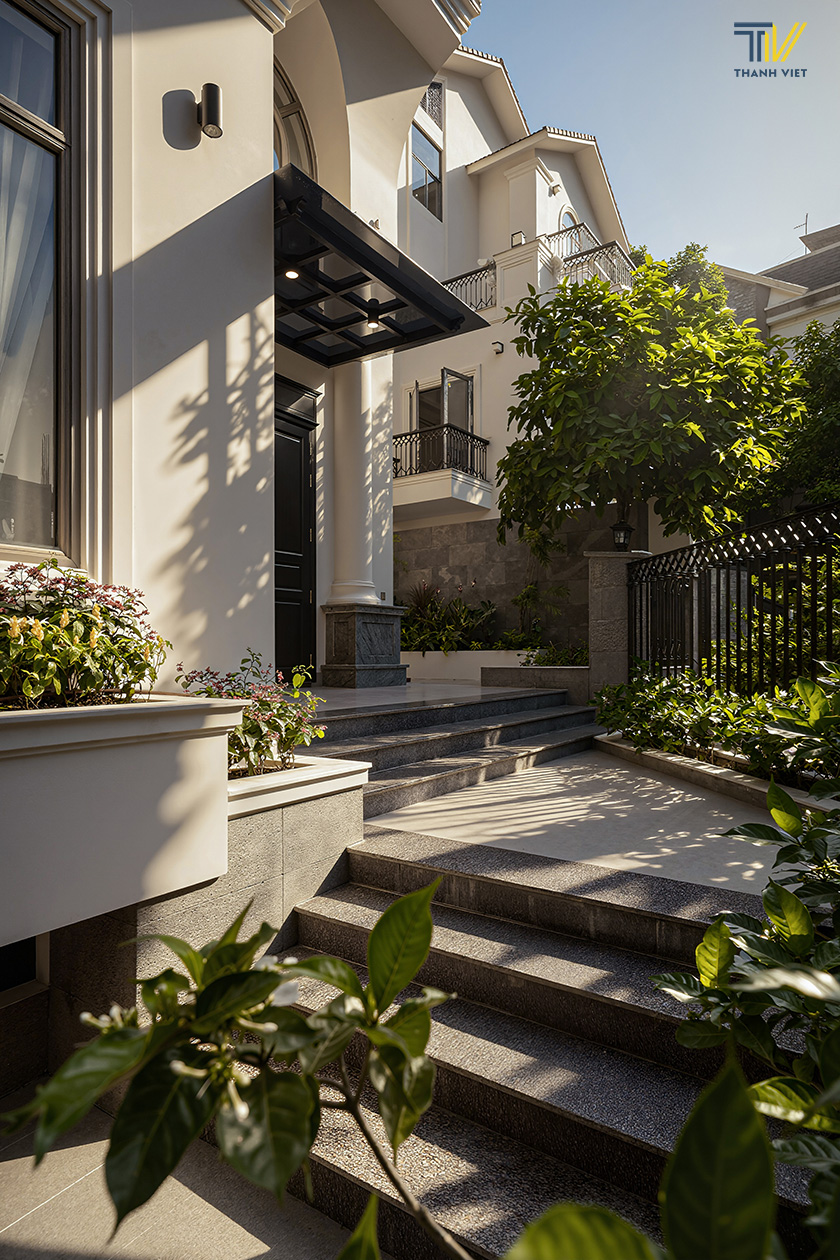 Từ đầu, gia chủ đã lựa chọn phong cách Modern Classic cho kiến trúc biệt thự. Với các đường nét thanh thoát, hài hòa, cùng tỷ lệ cân đối, căn biệt thự hiện lên vô cùng trang nhã giữa khu đô thị cao cấp Saigon Mystery Villas.