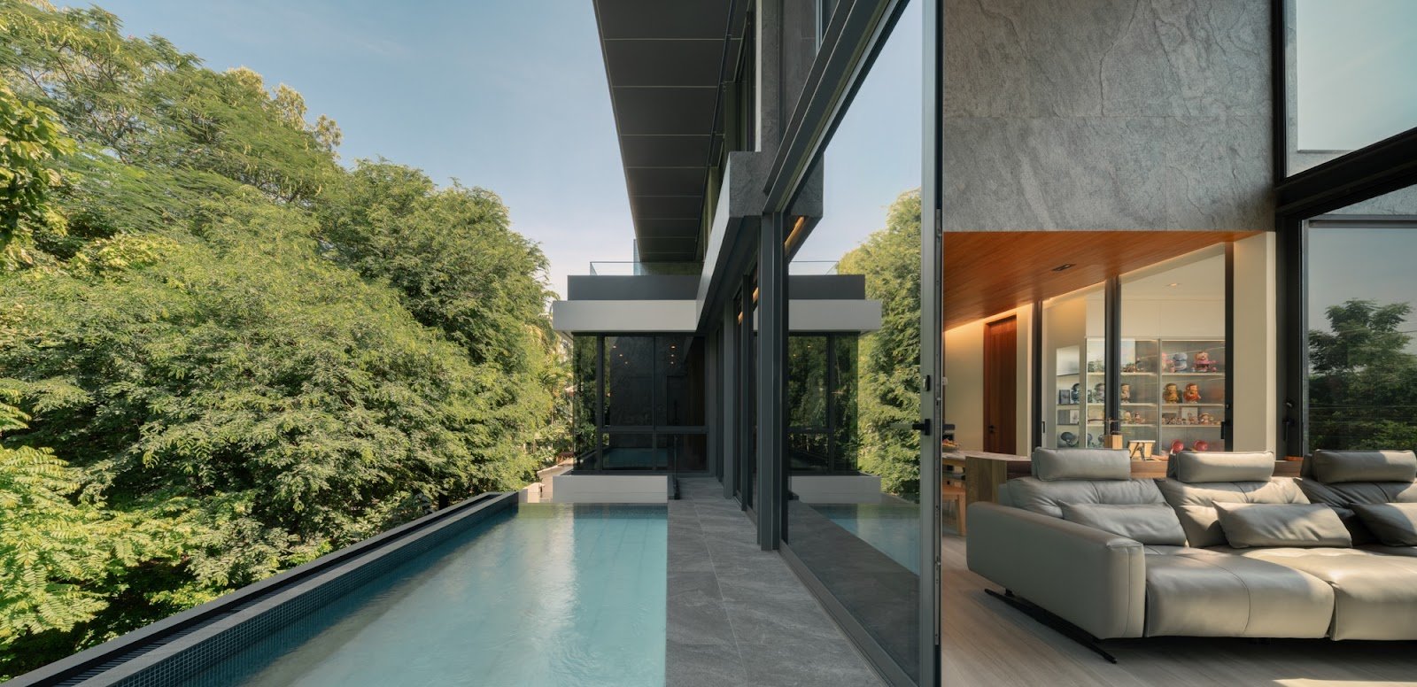 Baan Vela có tổng diện tích xây dựng 400m2, tọa lạc tại Bangkok, Thái Lan