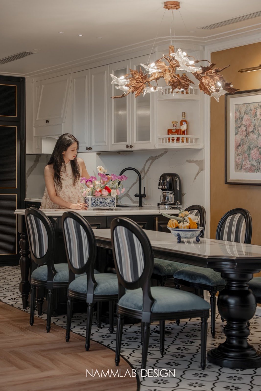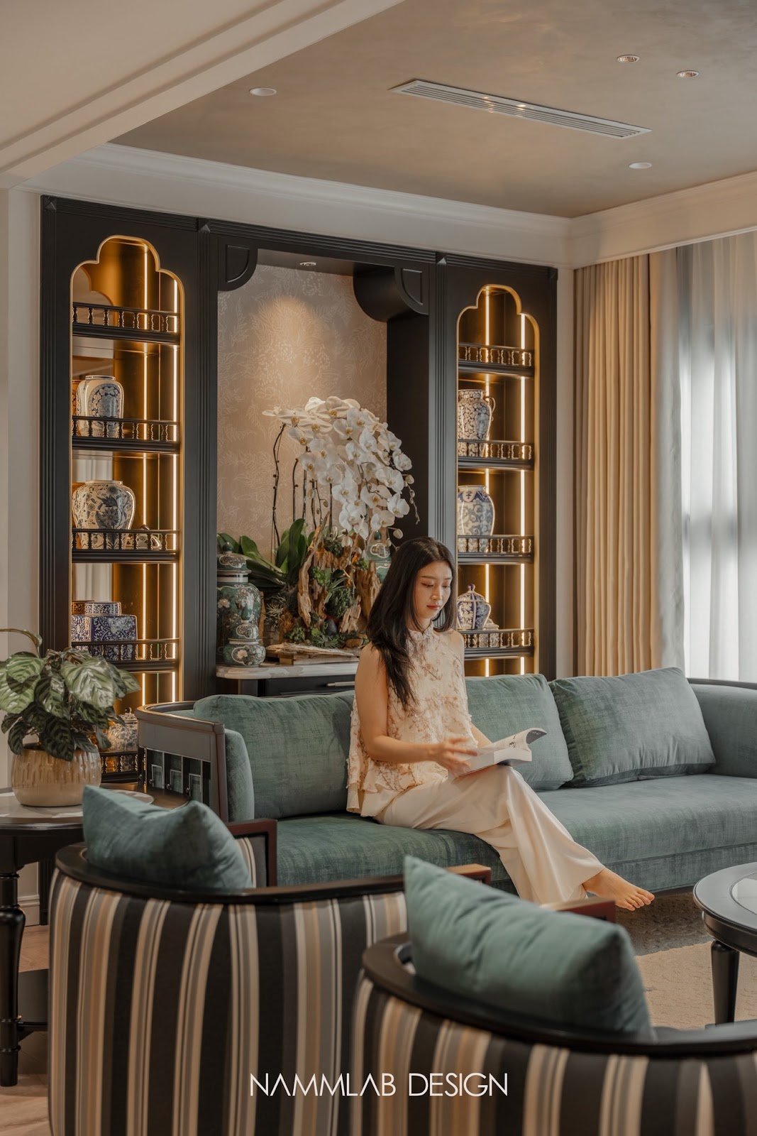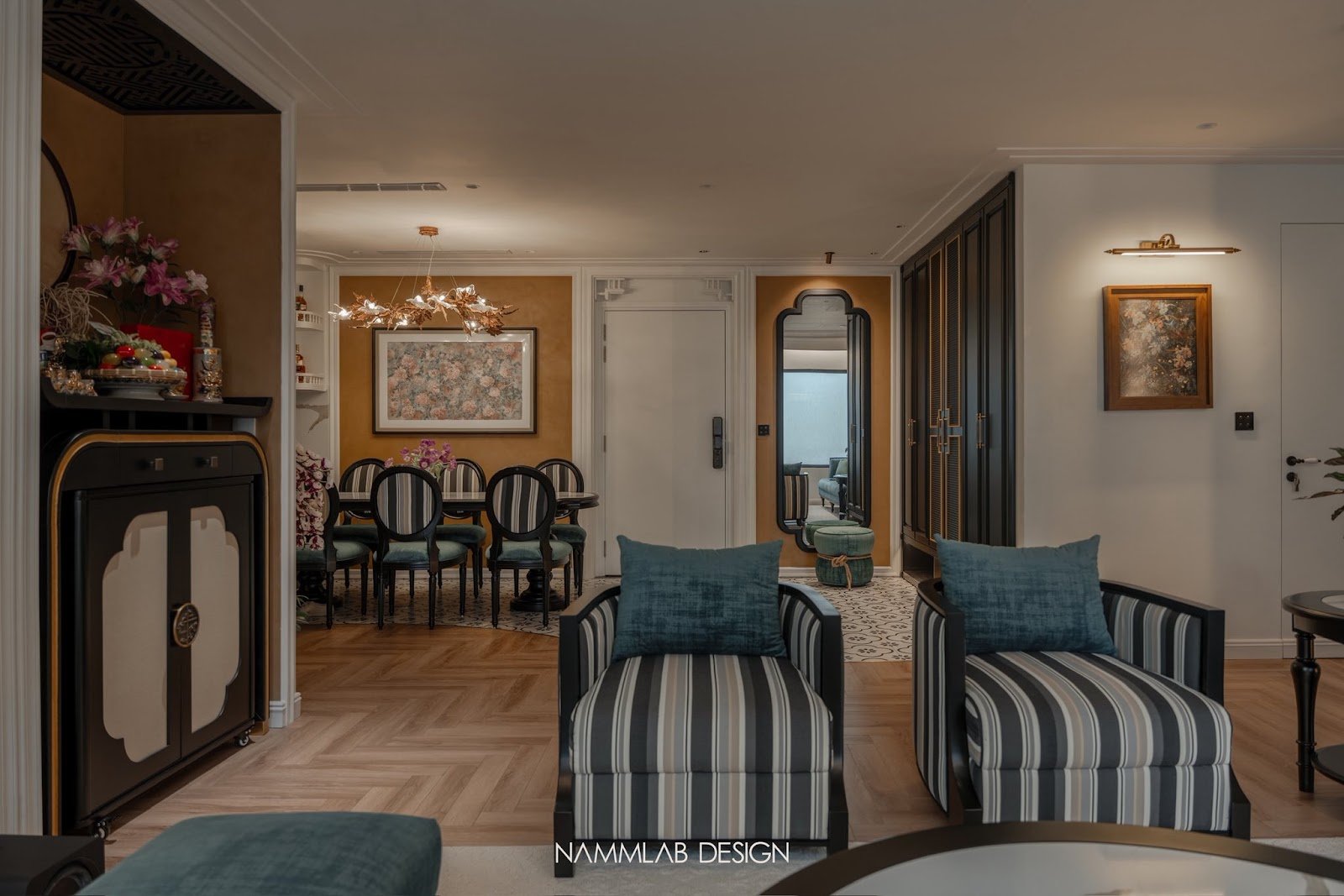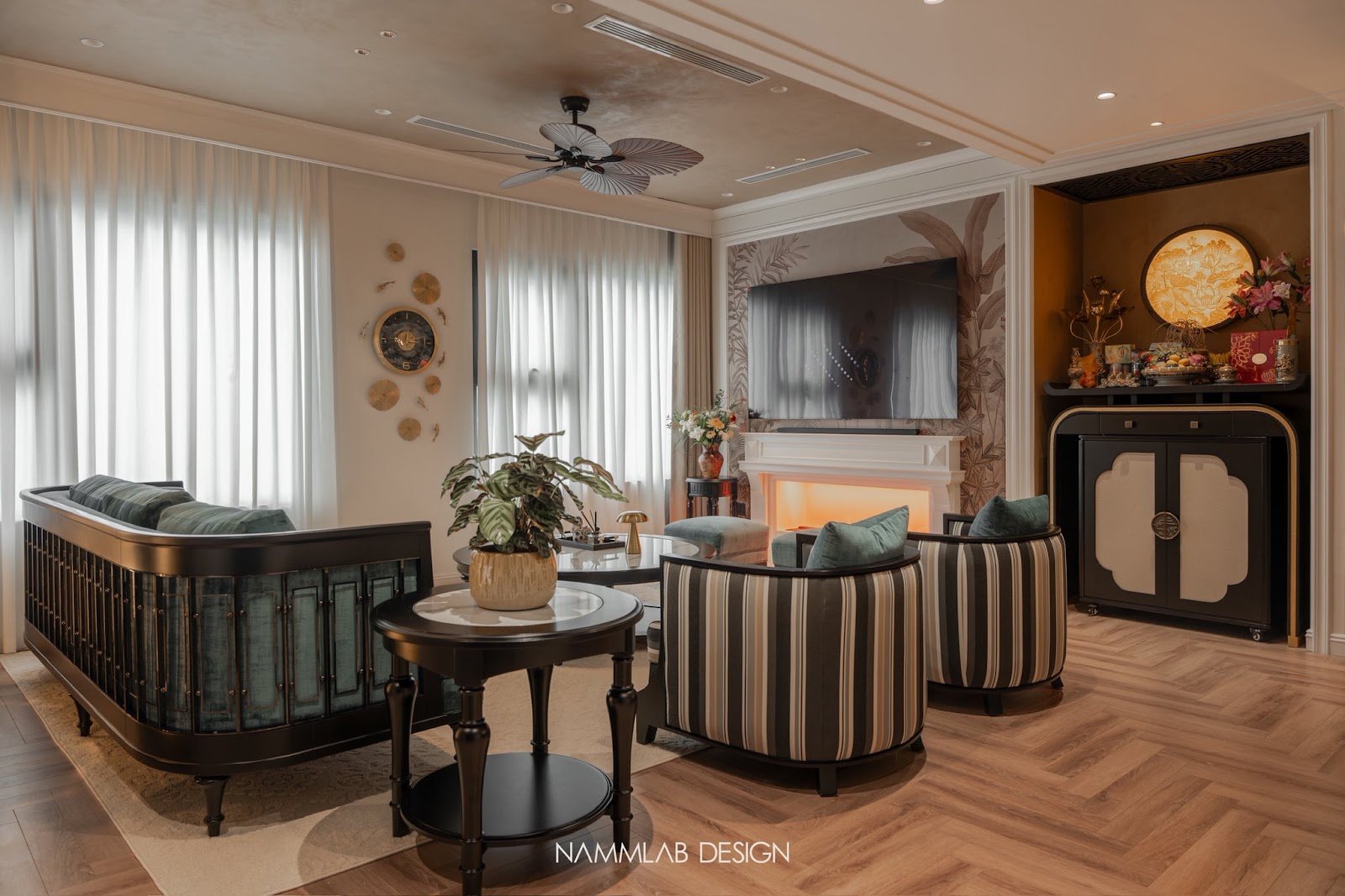 Căn hộ do Nammlab Design thiết kế, lựa chọn phong cách Indochine hiện đại làm chủ đạo – một trường phái không mới nhưng đòi hỏi sự tiết chế tinh tế để không bị “sến” hay rườm rà.