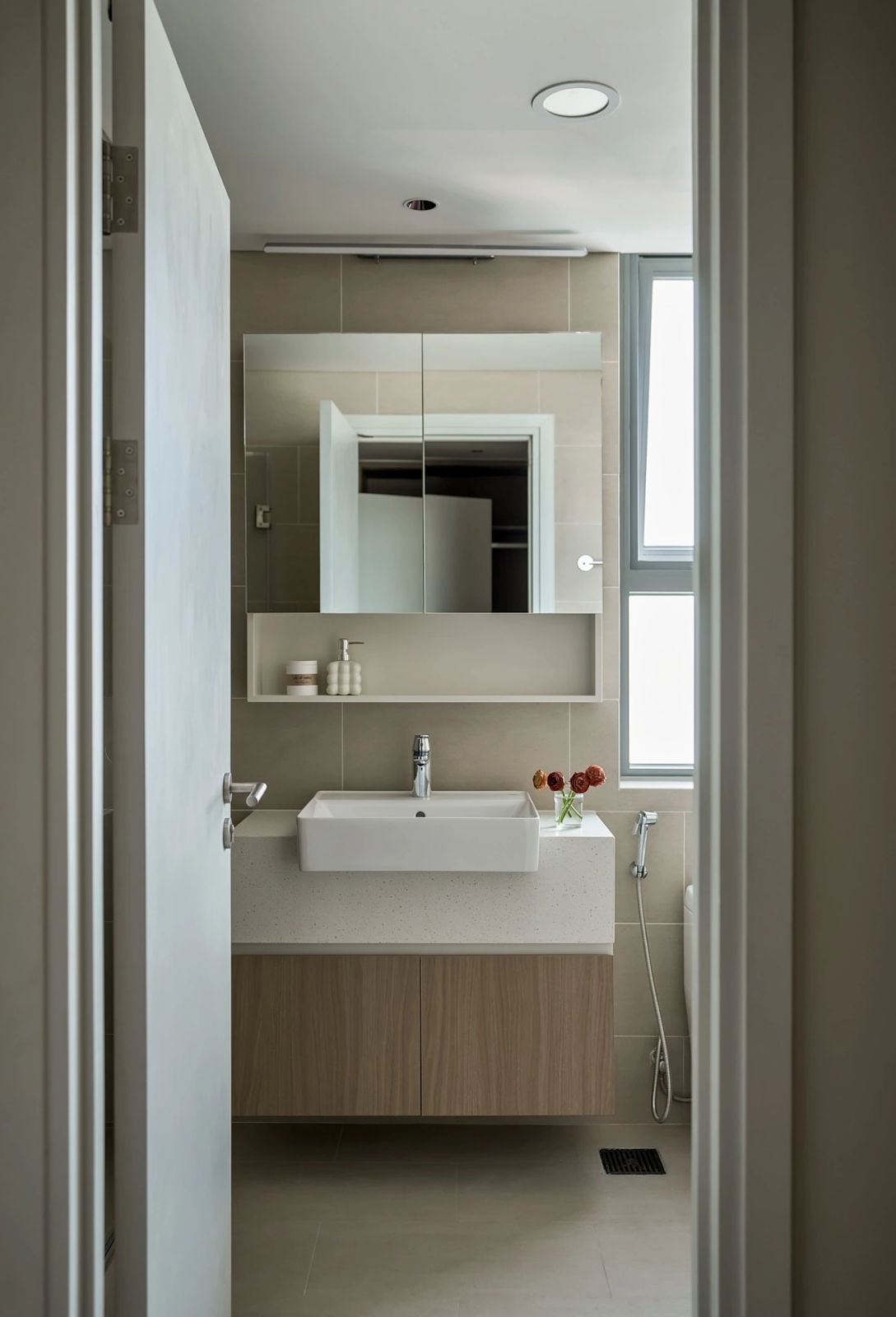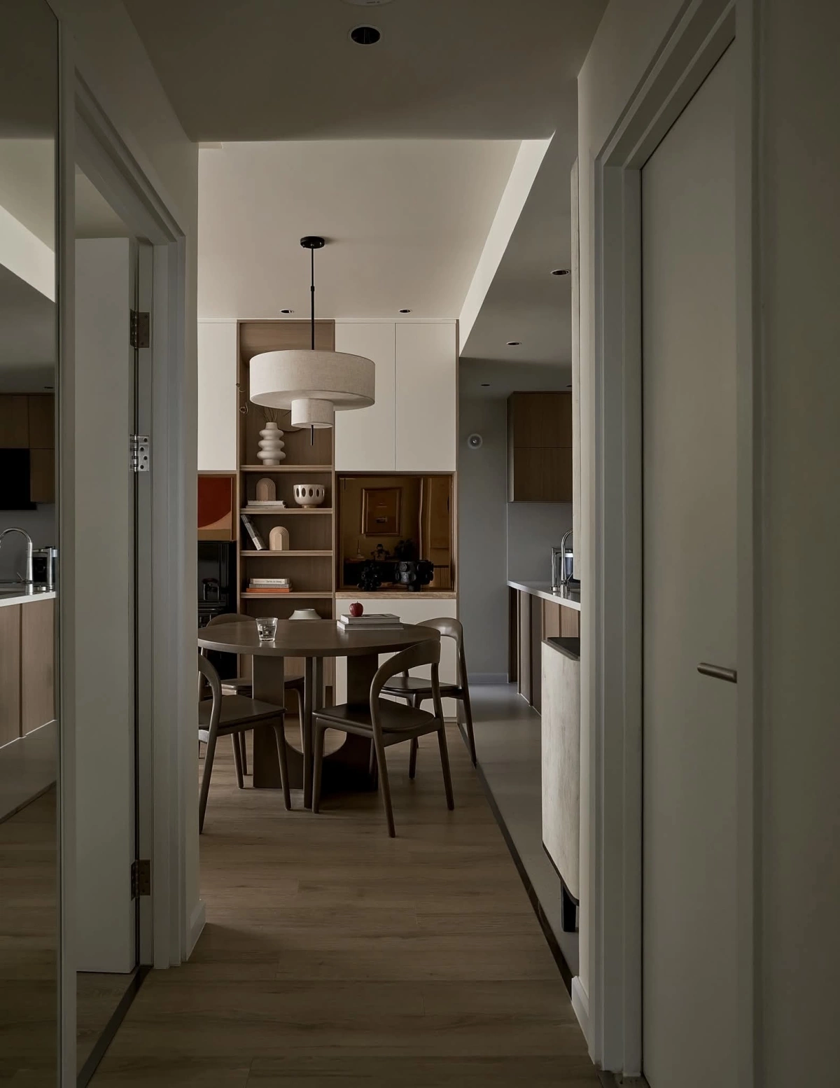 Việc hoàn thiện nội thất căn hộ chỉ kéo dài khoảng 1,5 tháng – một quãng thời gian đủ để “nắn lại” những chi tiết phù hợp với gu thẩm mỹ và nhu cầu sử dụng. Không sử dụng những món nội thất đắt tiền hay màu sắc bắt mắt, nhưng tổng thể căn nhà lại tạo ra cảm giác gắn bó, nhẹ nhàng và có chiều sâu.