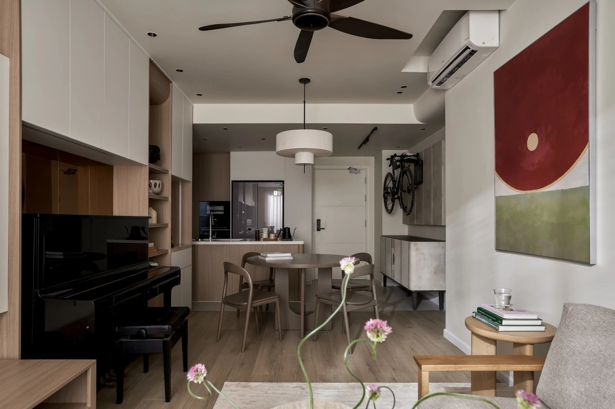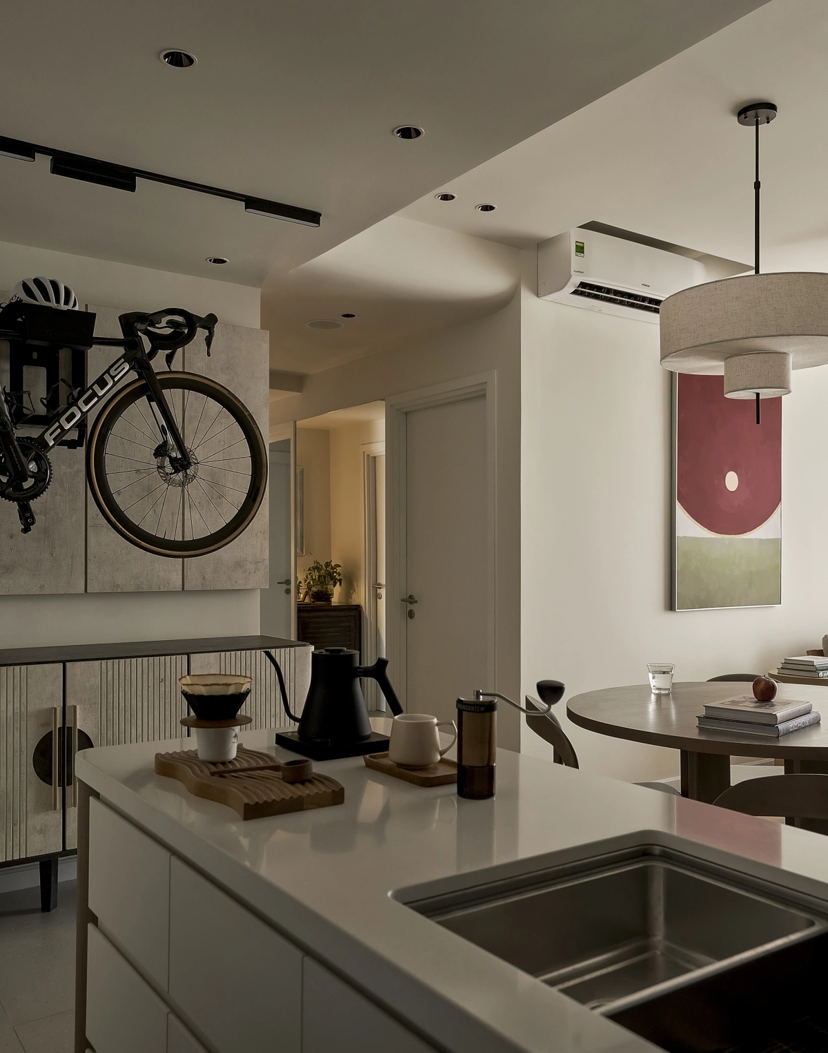 Với một người trẻ yêu sự tối giản, tinh tế và cá nhân hóa, căn hộ 100m2 tại Thủ Đức trở thành không gian sống lý tưởng – nơi mọi sở thích nhỏ đều có chỗ để bày tỏ. Từ chiếc xe đạp treo tường ngay lối vào đến góc cà phê yên tĩnh, mỗi chi tiết đều mang dấu ấn riêng của chủ nhân.