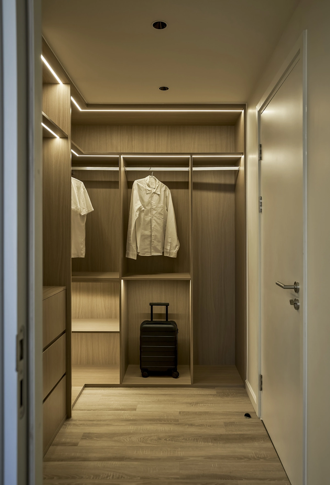 Phòng thay đồ thiết kế mở, tách biệt với phòng ngủ chính nên tận dụng được tối đa không gian lưu trữ
