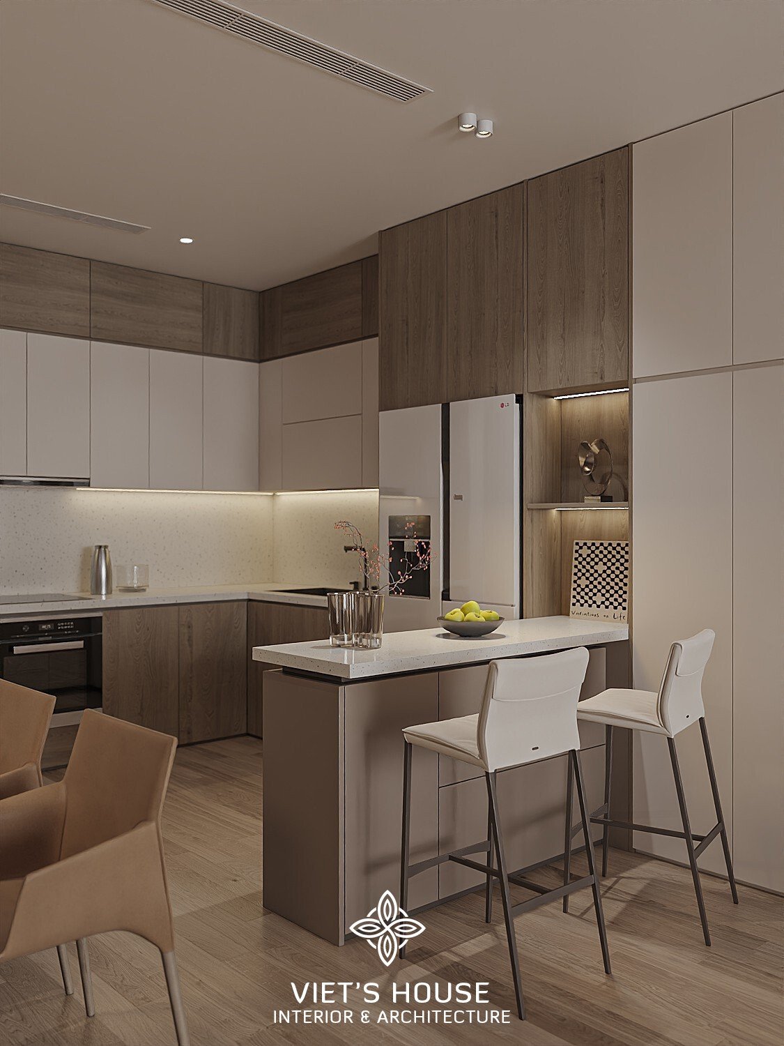 Không gian bếp hiện đại với đảo bếp tiện nghi, điểm nhấn cho những bữa ăn nhanh và thư giãn.