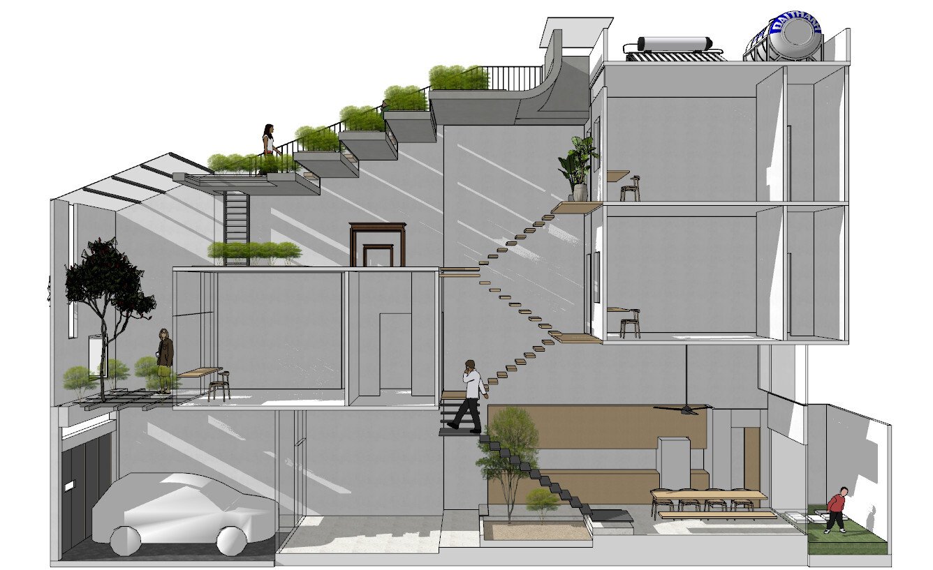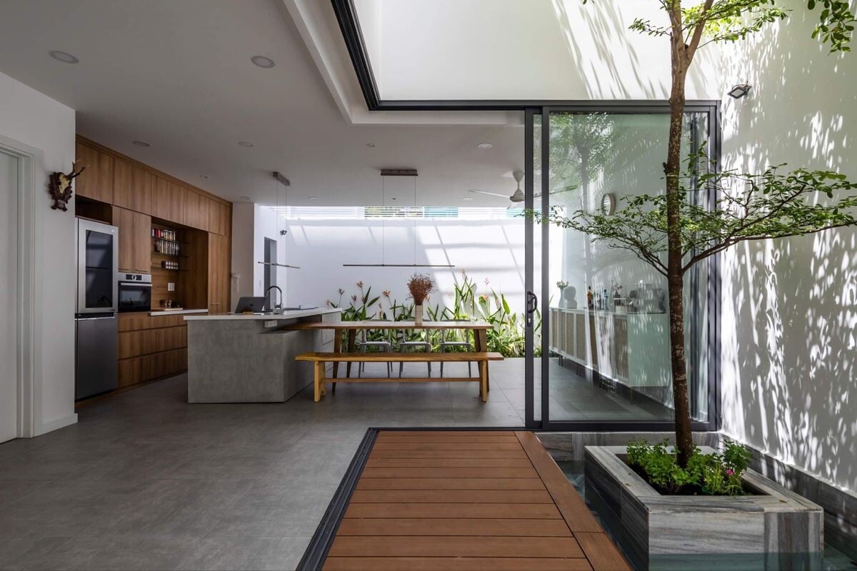 Kinh nghiệm là luôn bố trí giếng trời giữa nhà hoặc cuối nhà, để gió và ánh sáng có thể xuyên suốt các tầng.