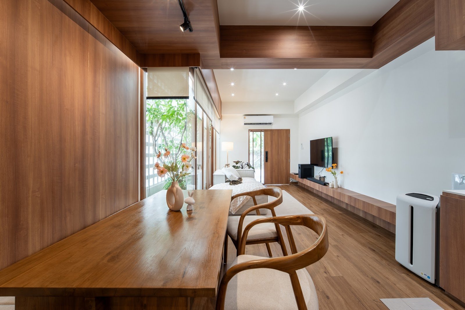 • Tận dụng vật liệu gỗ Teak để tạo cảm giác ấm cúng, gần gũi.