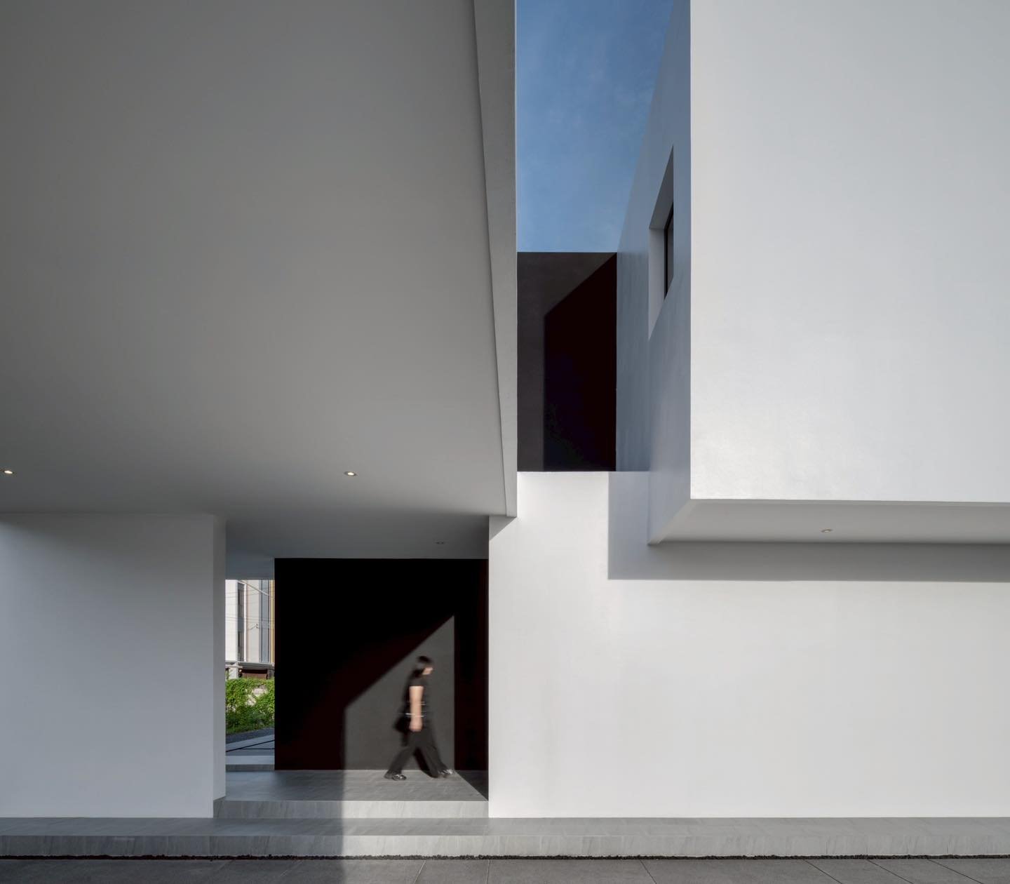 Hành lang lối vào được tạo khối âm - dương rõ ràng, dẫn dắt ánh sáng và tầm nhìn. Thiết kế tạo cảm giác chậm rãi khi bước qua vùng chuyển tiếp giữa ngoài và trong - một “khoảnh khắc tĩnh” đặc trưng của kiến trúc TOUCH Architect