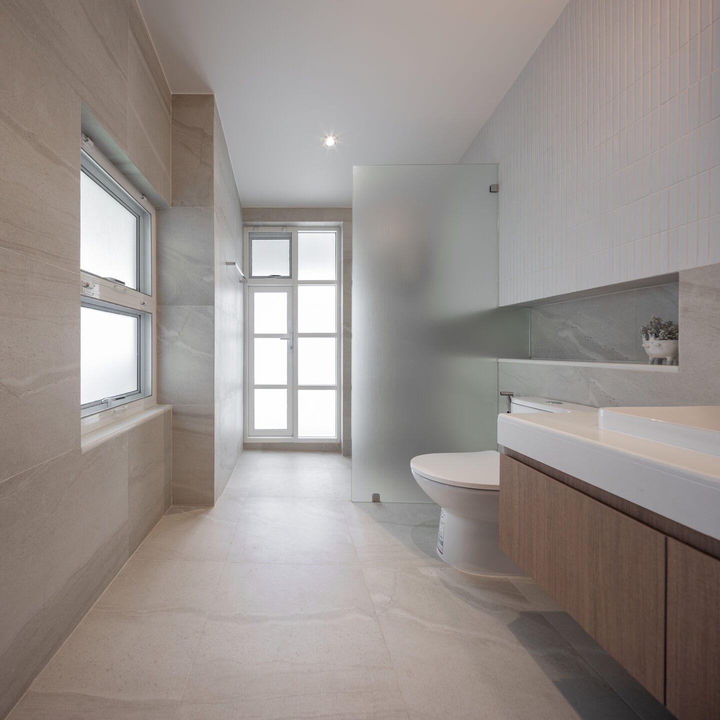 Phòng tắm và nhà vệ sinh rộng rãi của NN House