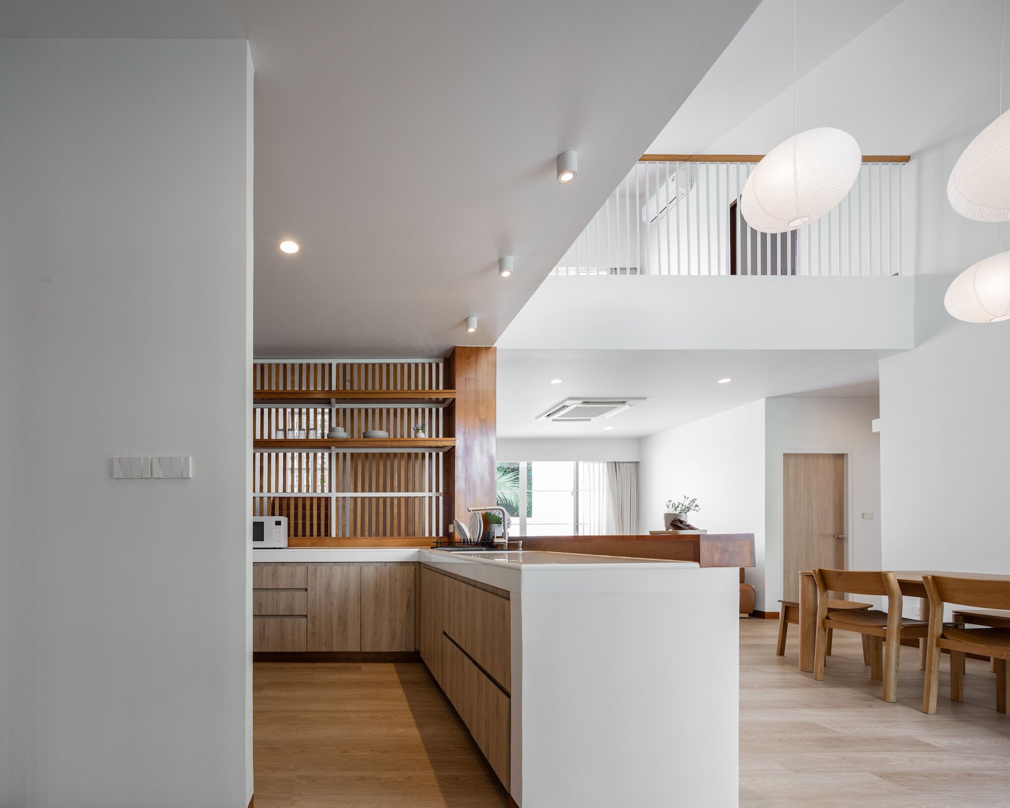 Phòng ăn và bếp được bố trí đối diện nhau, tạo sự thuận tiện trong sinh hoạt