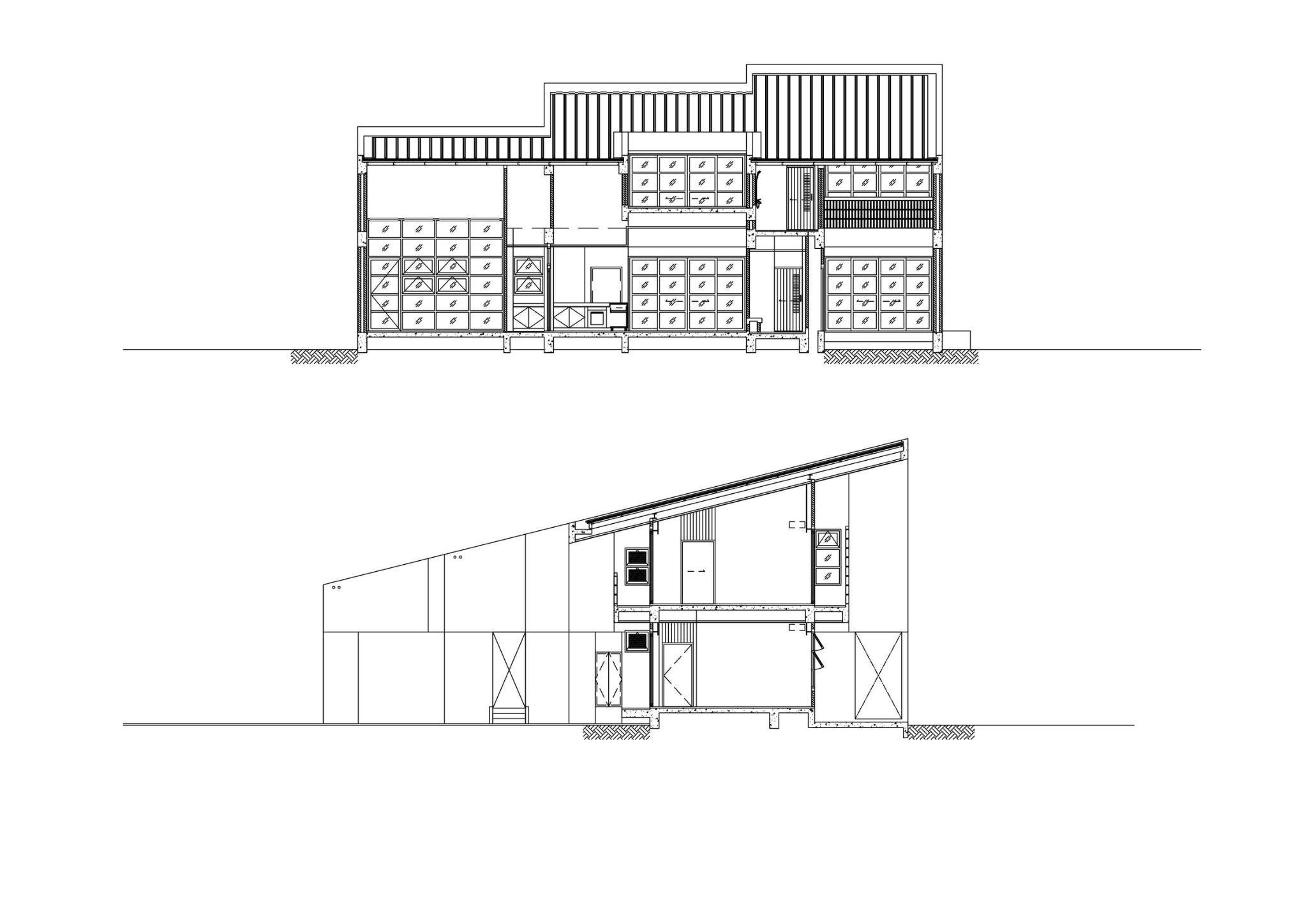 Bản vẽ mô phỏng cách xây dựng vát chéo các khối của NN House