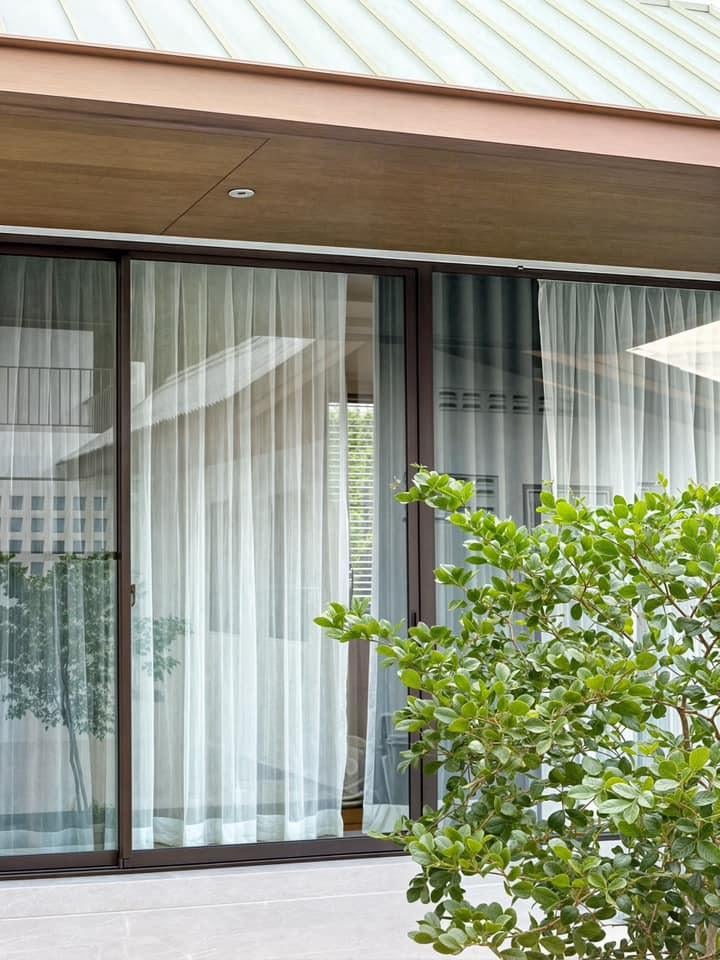 Ở 3T HOUSE, thiên nhiên không chỉ là phông nền mà là một phần trong nhịp sống. Mỗi góc nhìn qua khung cửa đều là một “bức tranh sống động” của nắng, gió, cây và mây trời. Hệ cửa kính lớn, lam che nắng và mái hiên dài cho phép ánh sáng lọc nhẹ vào trong, vừa đủ để làm ấm không gian mà không gây chói.