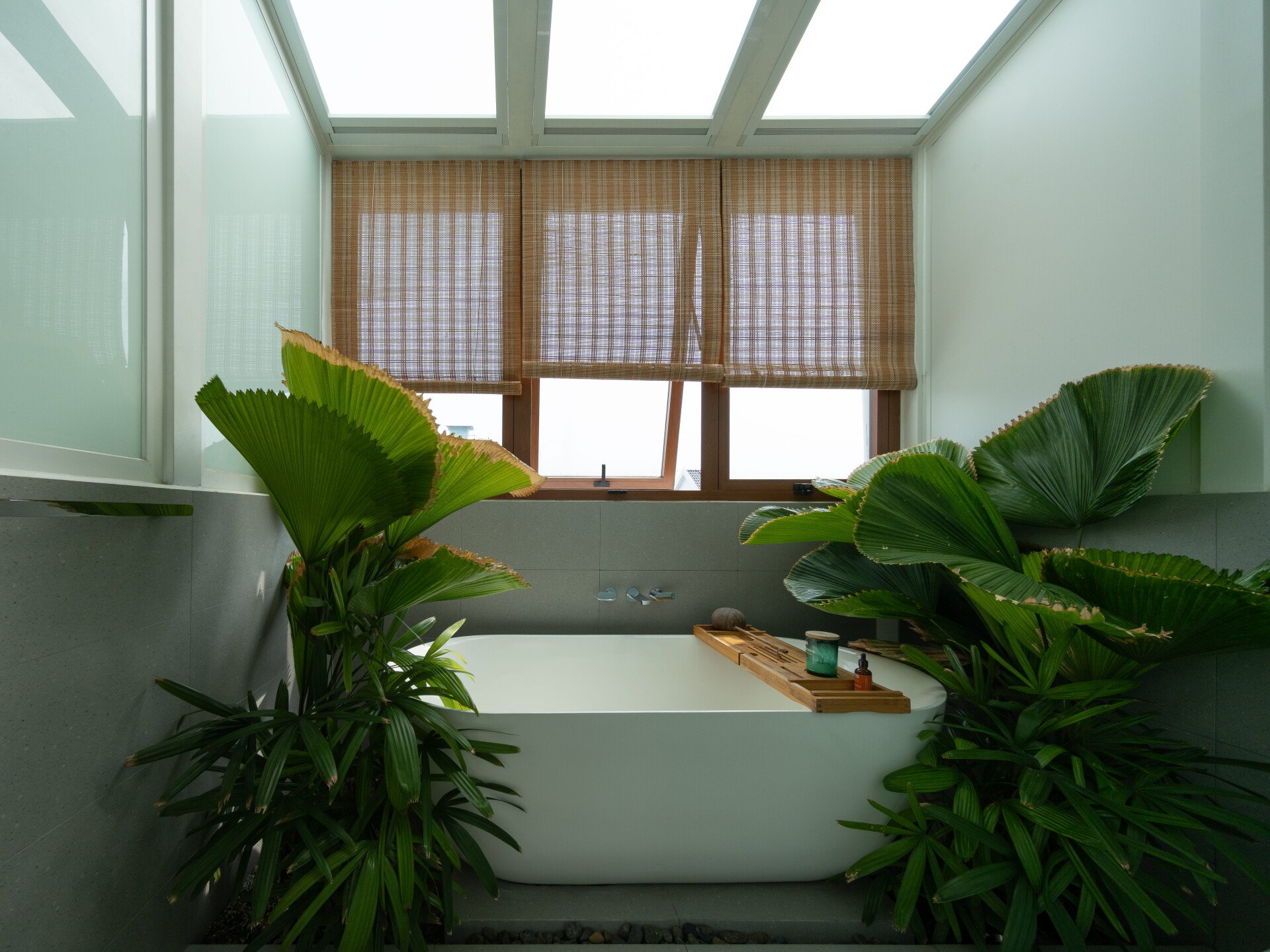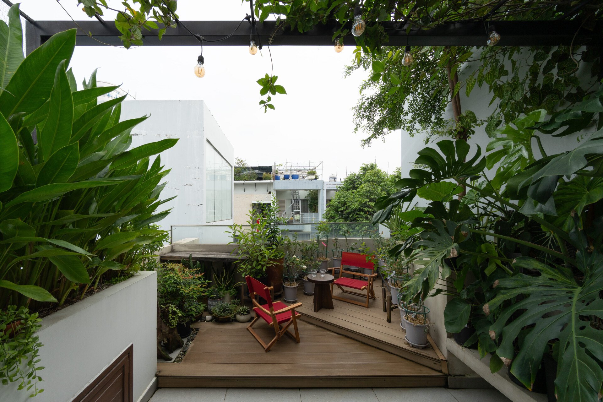 Sân thượng: Không gian thư giãn với phòng tắm – bồn ngâm và mảng xanh; là nơi cân bằng nhiệt, đón gió, mở ra một nhịp sống chậm rãi giữa đô thị.