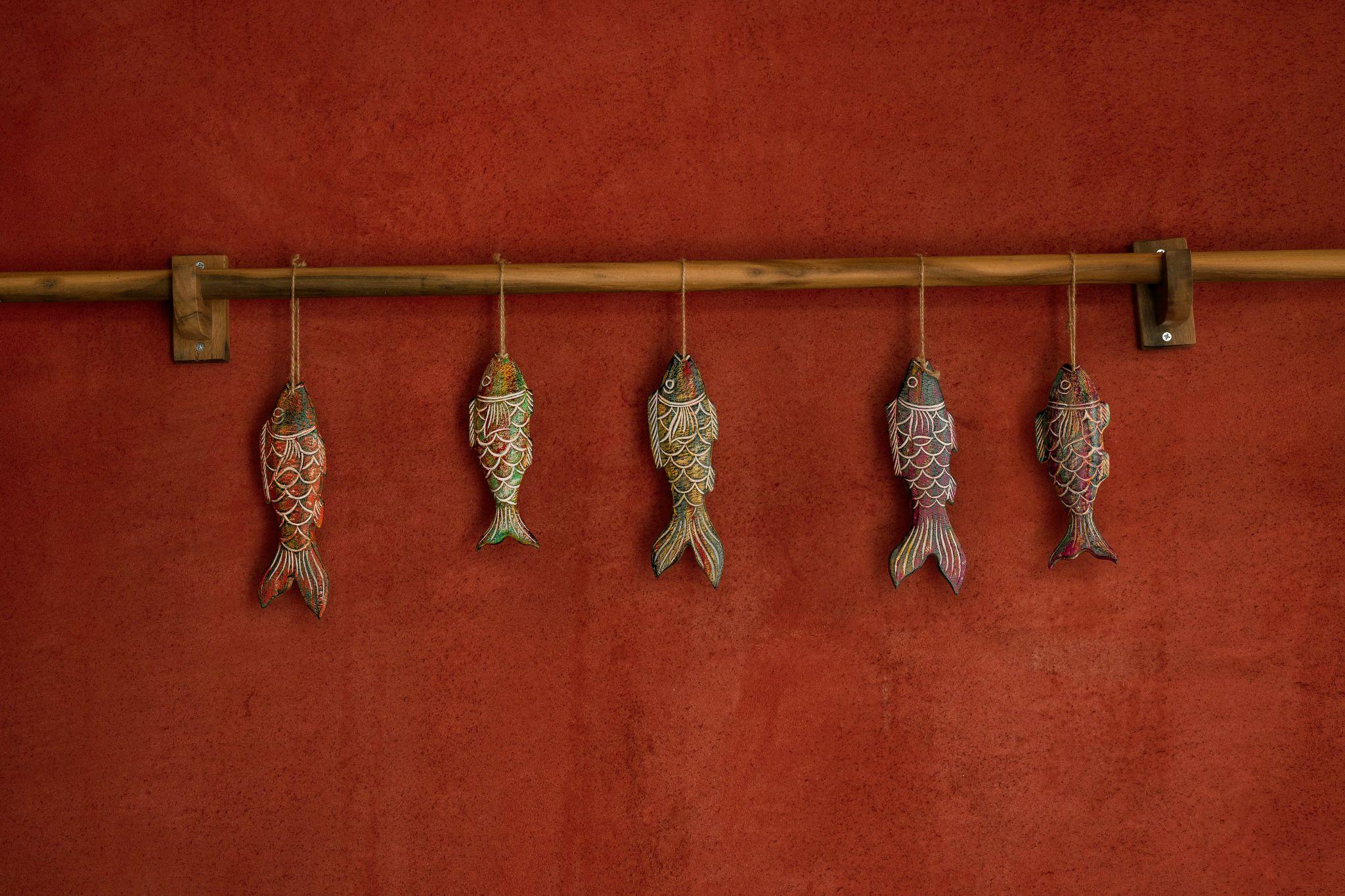 Hàng trăm hình tượng cá lớn nhỏ xuất hiện khắp nơi trong ngôi nhà – đôi khi là hình chạm khắc trên vách tường, khi lại là những mảng ốp gạch gợi vảy cá, hay bóng cá in hắt qua lớp đèn thủ công. Tất cả được sắp đặt có chủ đích, nhưng không gò bó, để tạo cảm giác chuyển động mềm mại – như thể “dòng nước” đang len lỏi qua từng khoảng không gian.