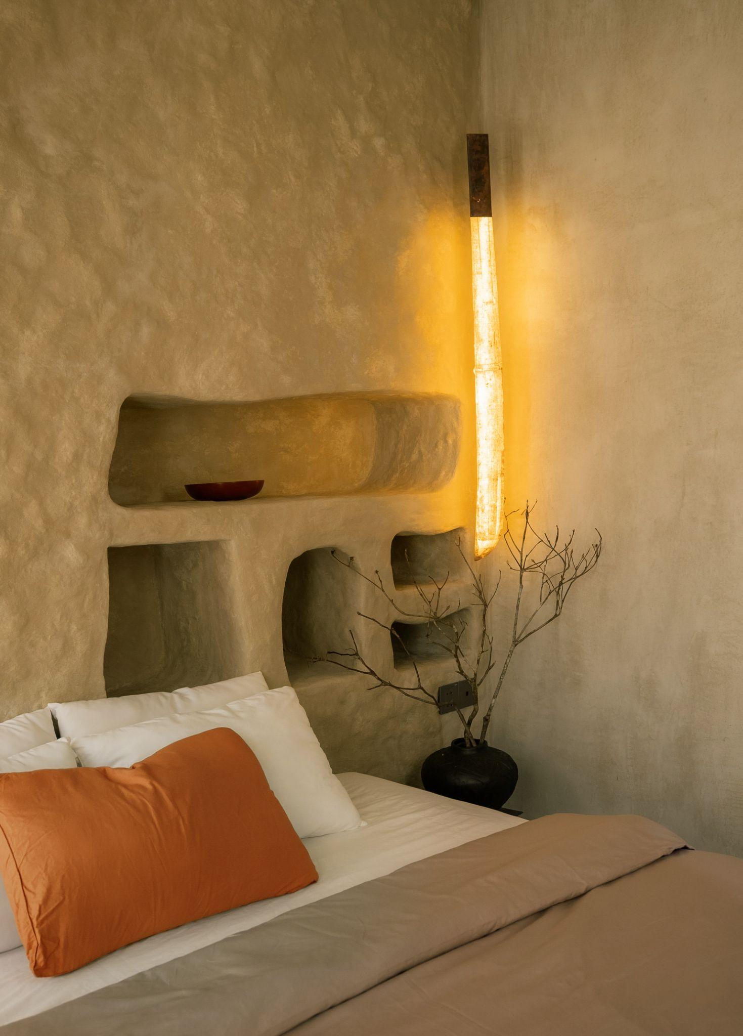 Những hộc tường thủ công uốn lượn vừa là góc lưu trữ, vừa tạo điểm nhấn thẩm mỹ
