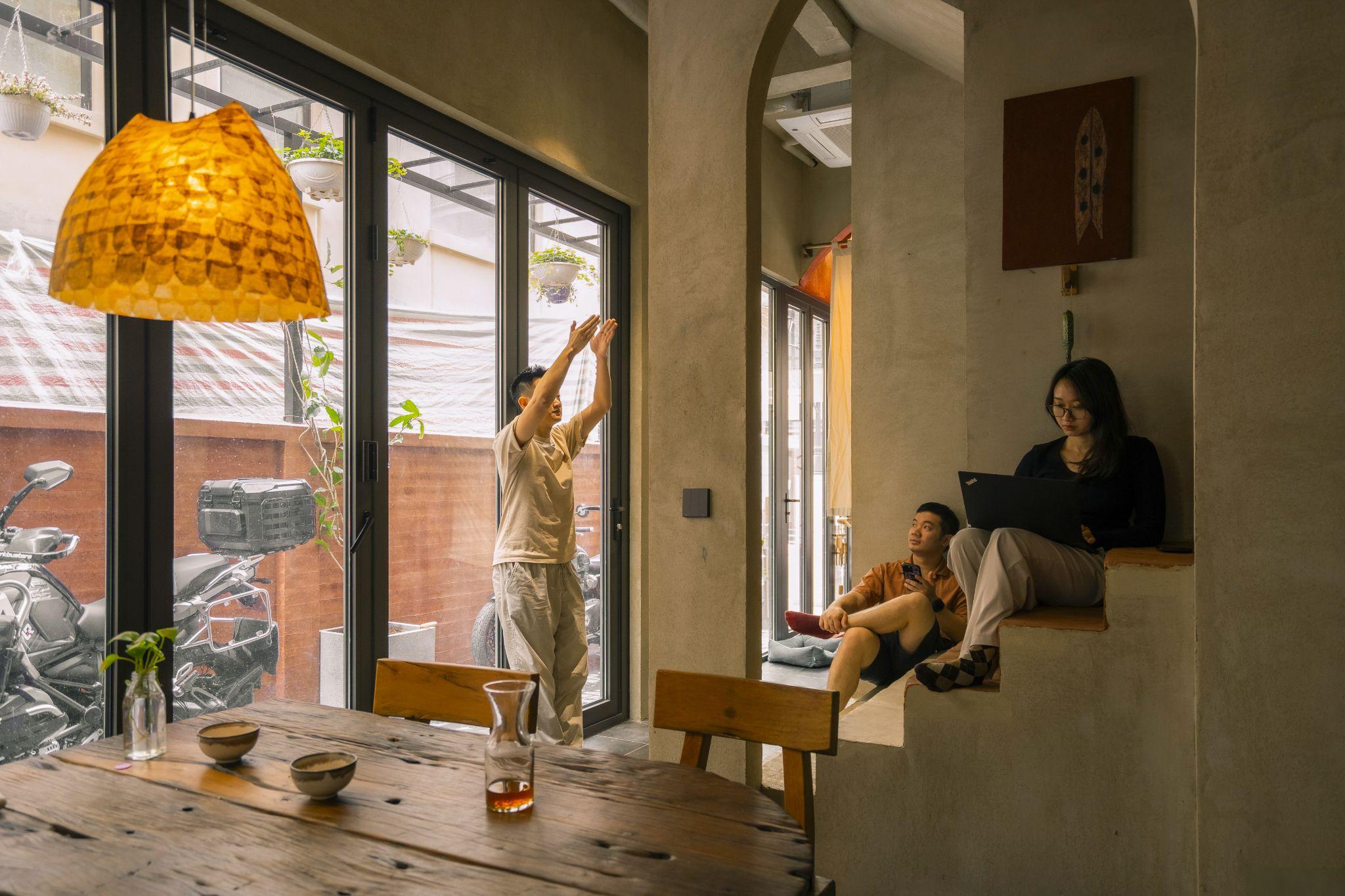Không gian mộc mạc trở nên tĩnh hơn, chậm hơn, khơi gợi cảm giác như đang ẩn mình trong một “hang trú” đầy yên ả giữa đời sống đô thị nhộn nhịp